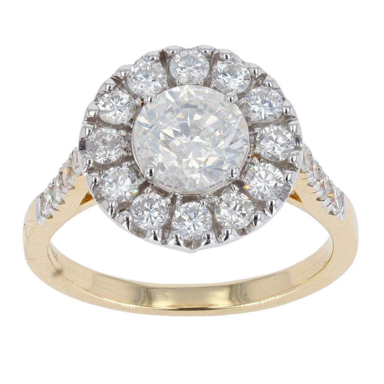 18ct Yellow Gold Est 2.15cts Diamond Halo Cluster Ring by Anya Belle