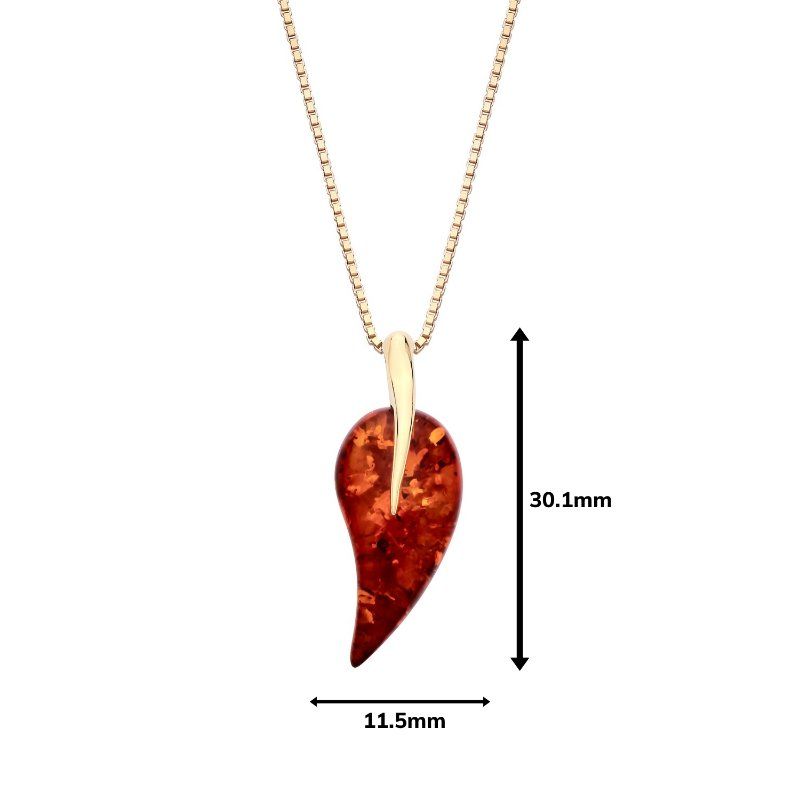 18ct Yellow Gold on Sterling Silver Baltic Amber Abstract Drop Pendant Necklace