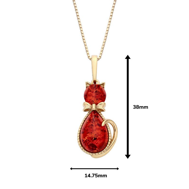 18ct Yellow Gold on Sterling Silver Baltic Amber Cat Pendant Necklace