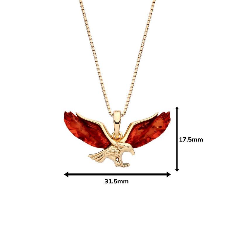 18ct Yellow Gold on Sterling Silver Baltic Amber Eagle Pendant Necklace