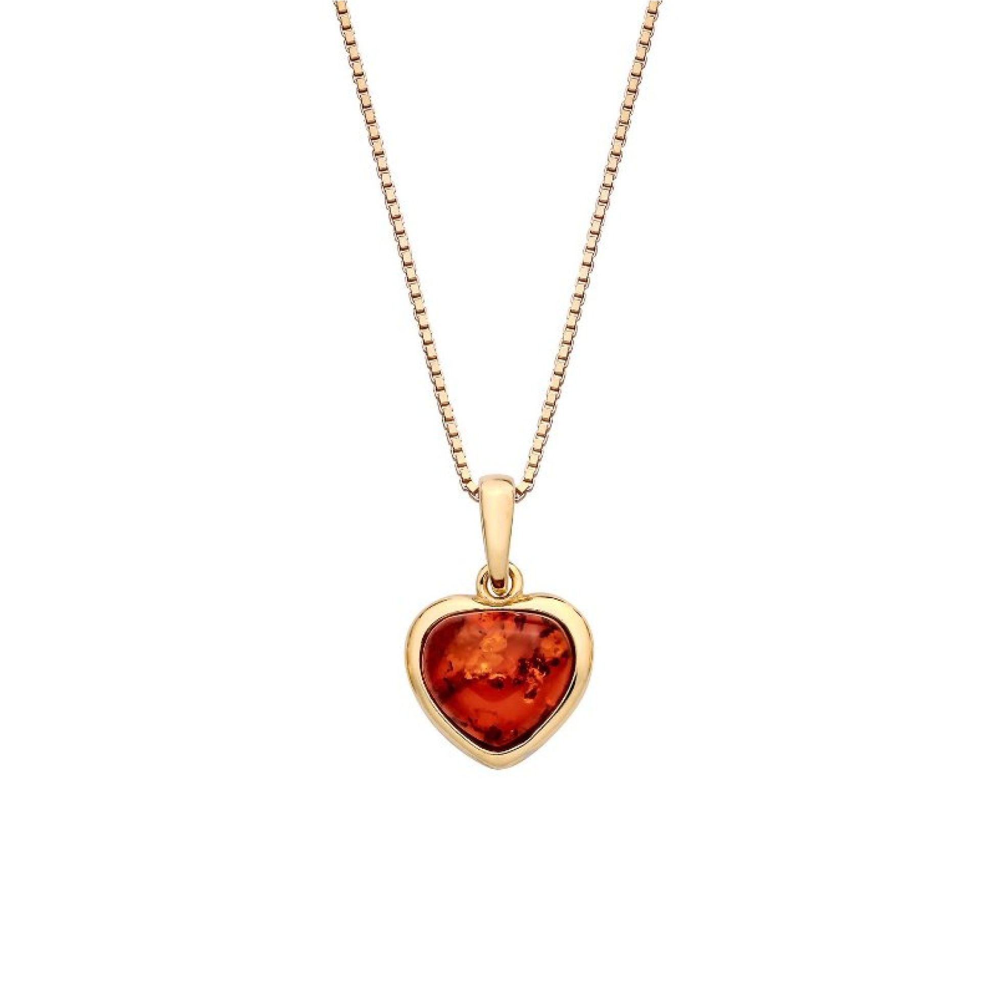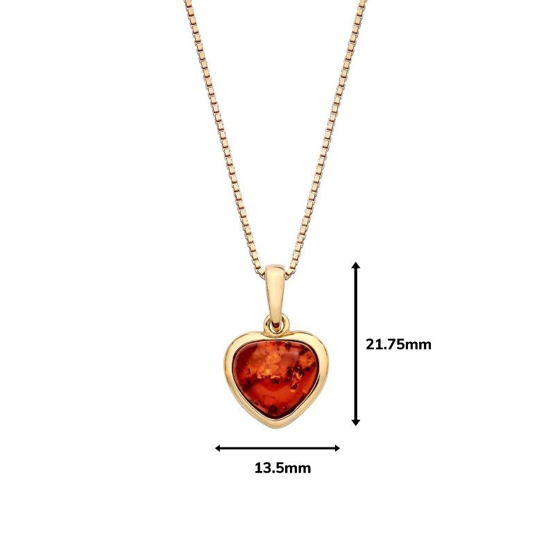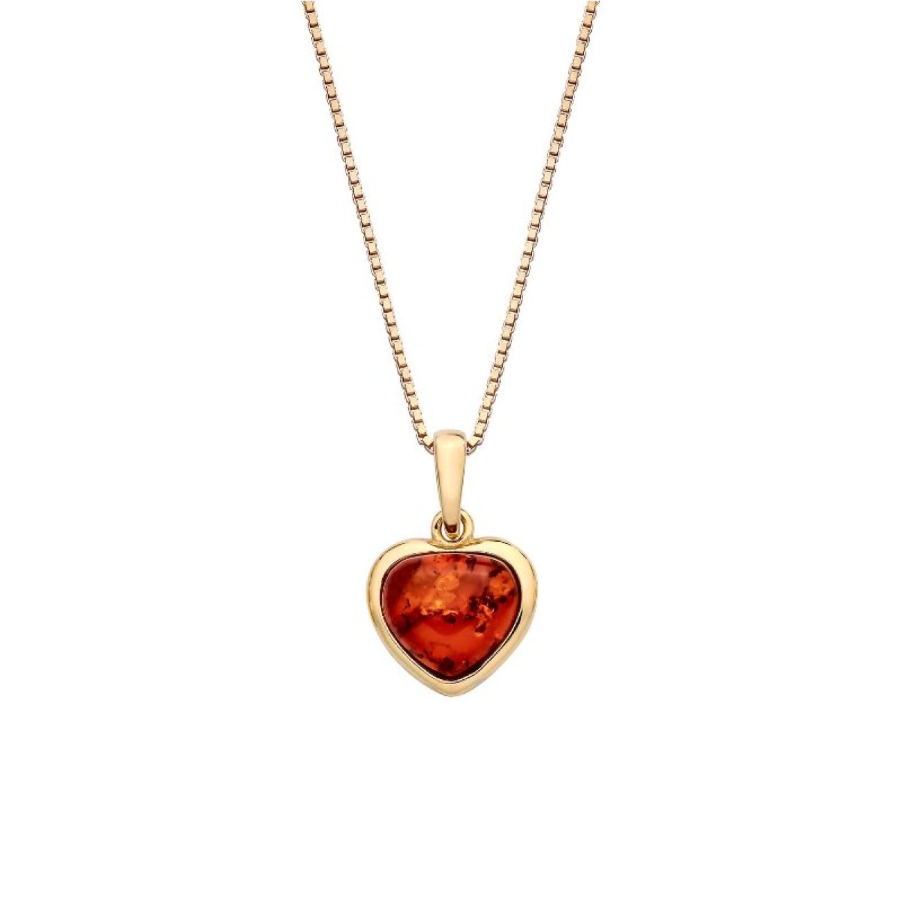 18ct Yellow Gold on Sterling Silver Baltic Amber Heart Pendant Necklace