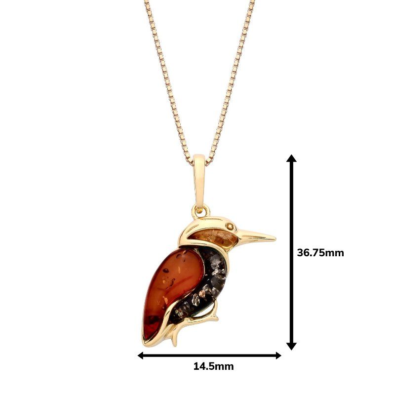 18ct Yellow Gold on Sterling Silver Baltic Amber Kingfisher Bird Pendant Necklace