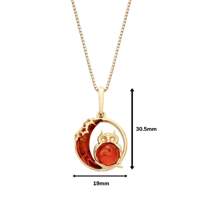 18ct Yellow Gold on Sterling Silver Baltic Amber Owl & Moon Pendant Necklace