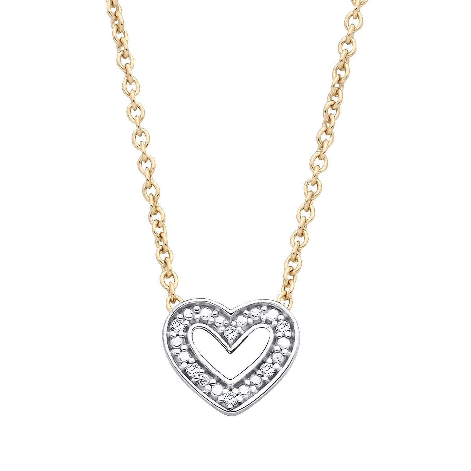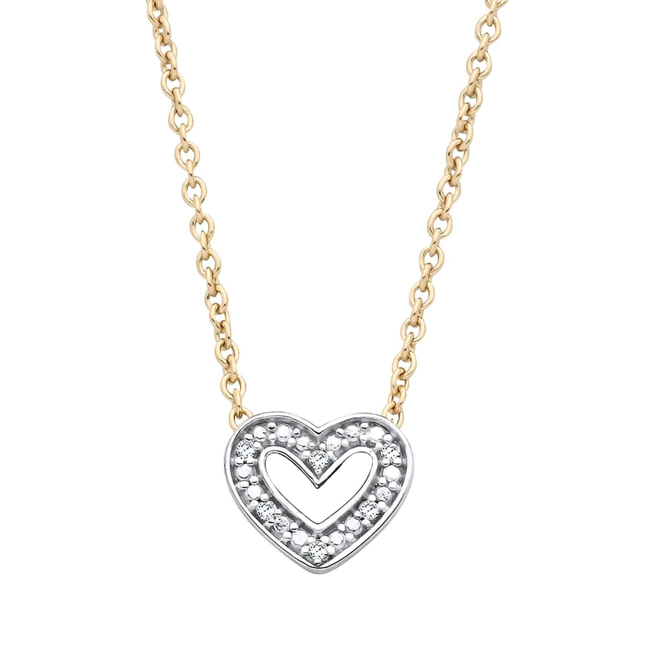 18ct Yellow Gold on Sterling Silver Natural Diamond Heart Necklace 16+2 inch