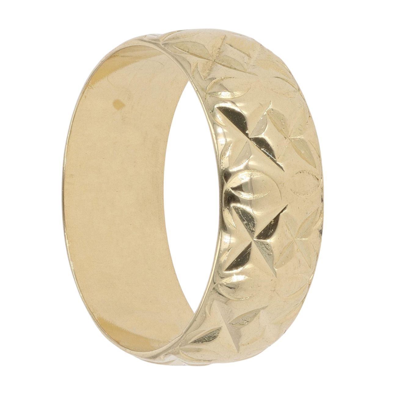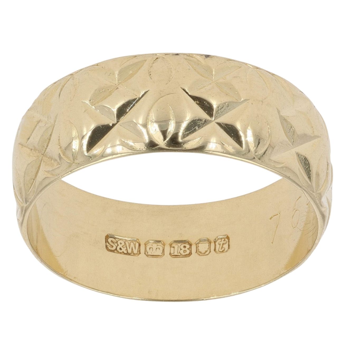 18ct Yellow Gold Patterned Wedding Band 6.8mm