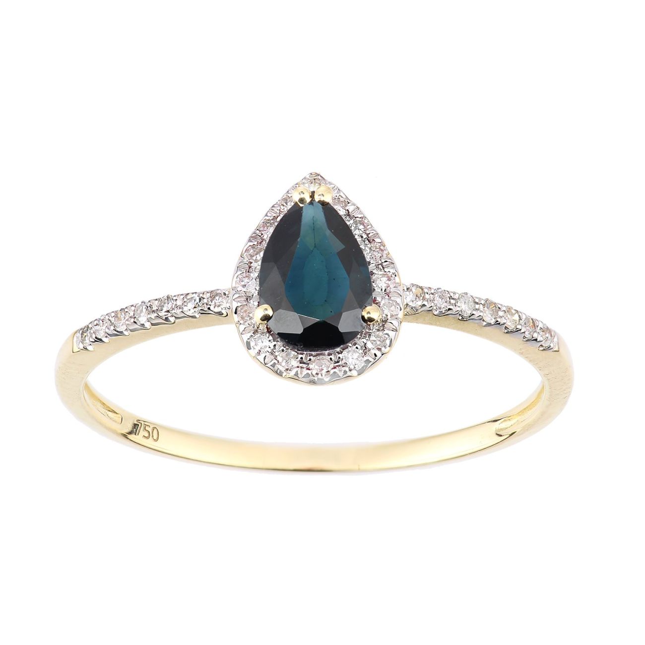 18ct Yellow Gold Pear Sapphire and Diamond Teardrop Cluster Ring