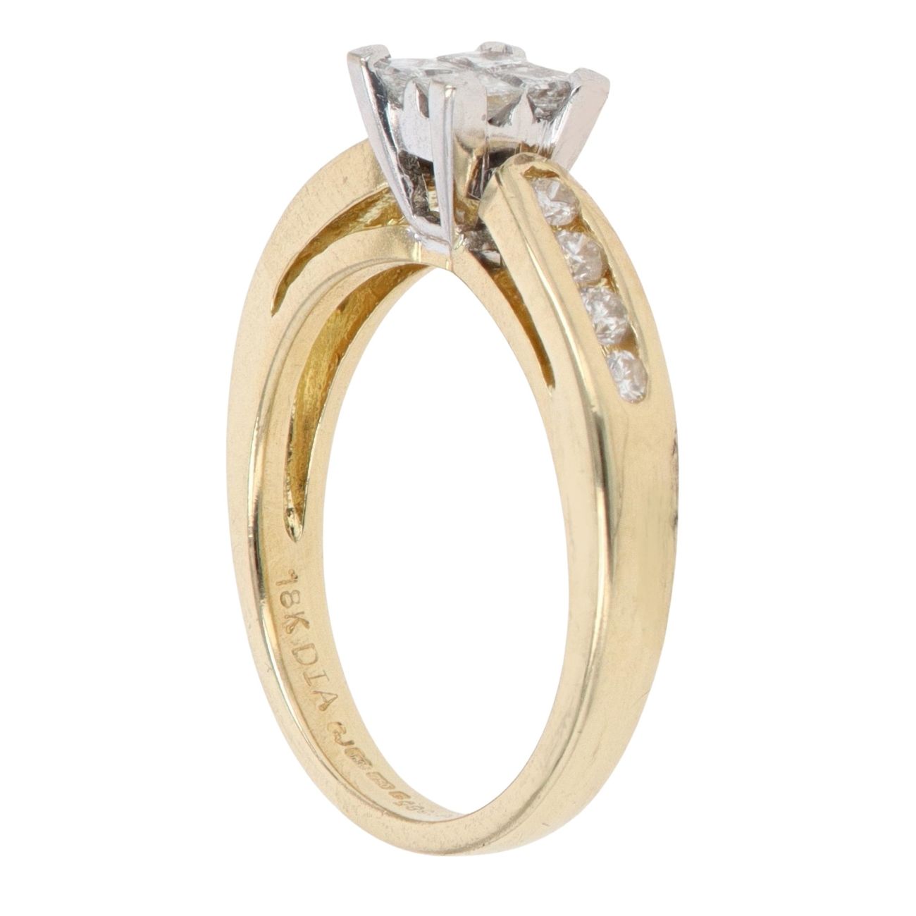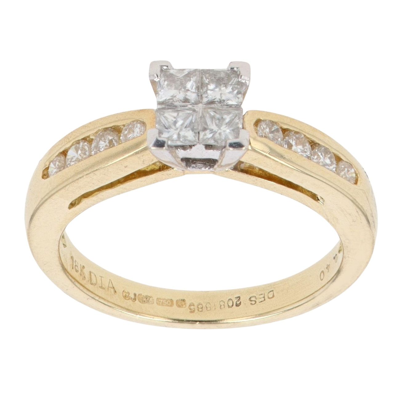 18ct Yellow Gold Princess And Brilliant Cut Diamond Cluster Ring