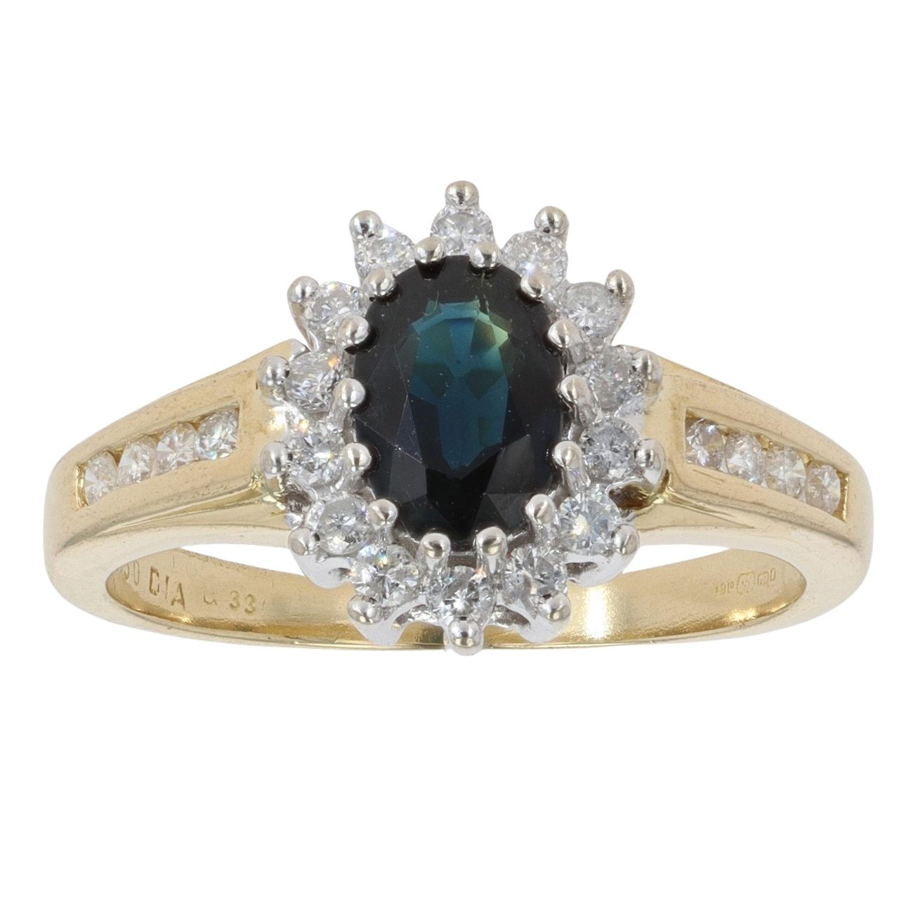 18ct Yellow Gold Sapphire and 0.33c Diamond Cluster Ring