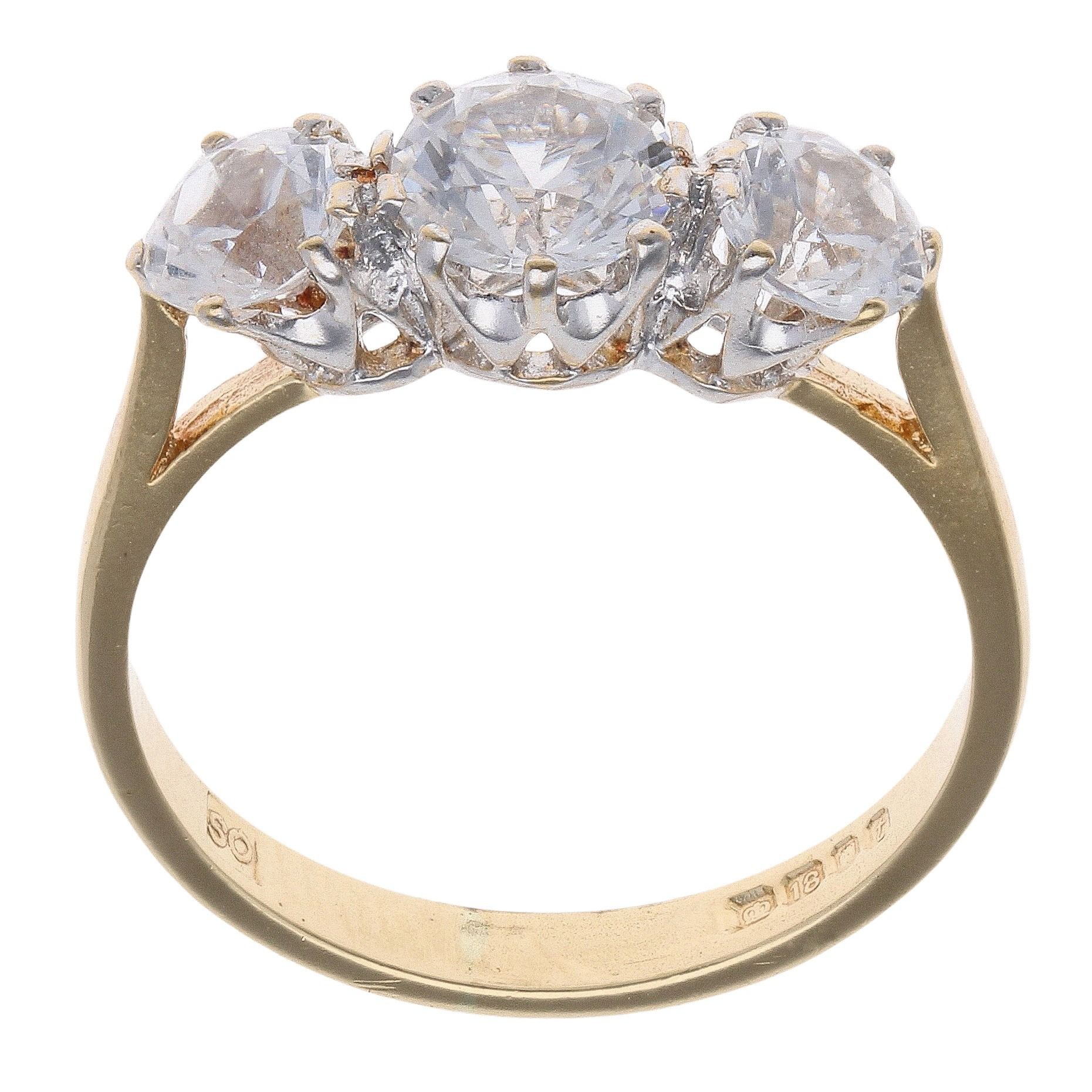 18ct Yellow Gold Three Stone Cubic Zirconia Ring