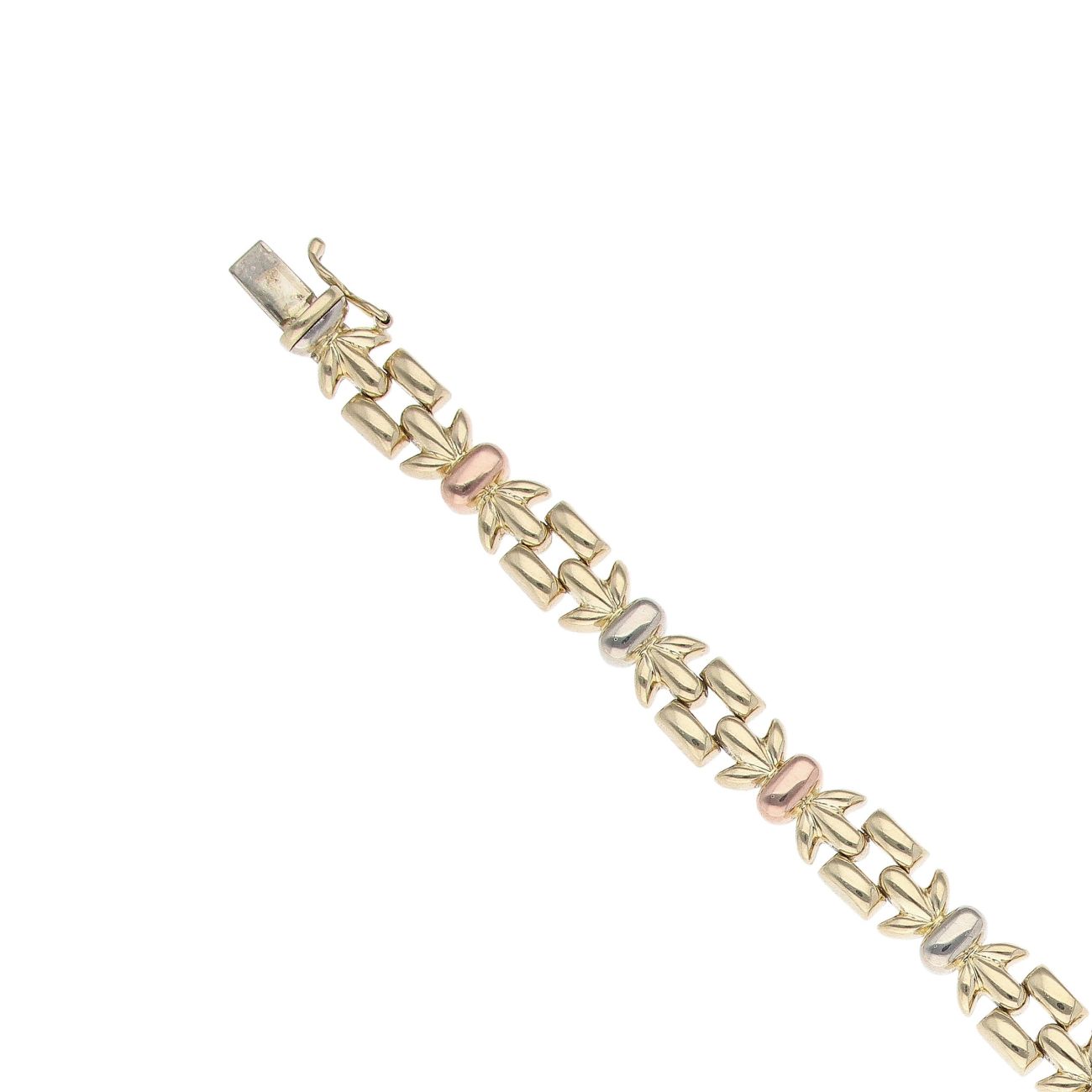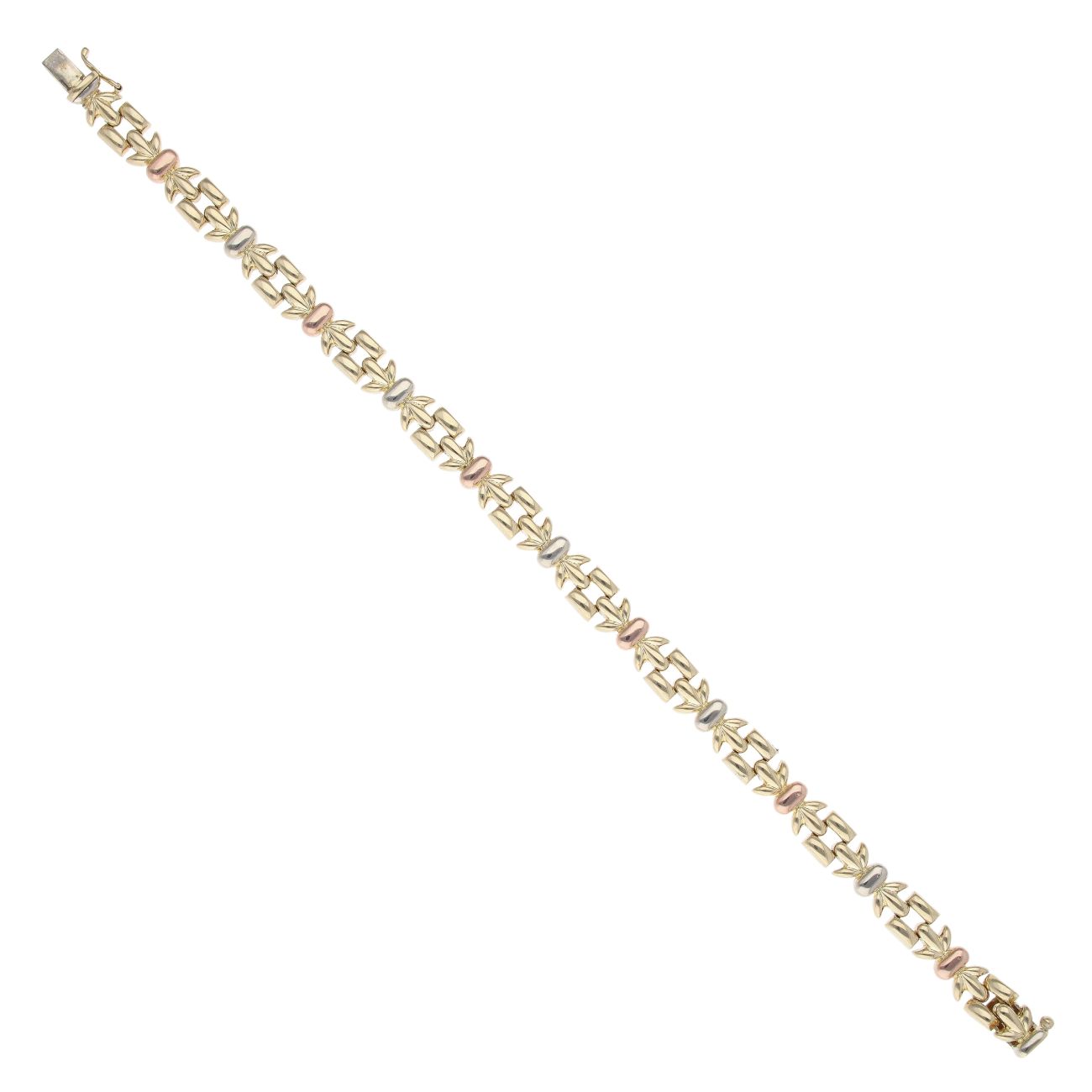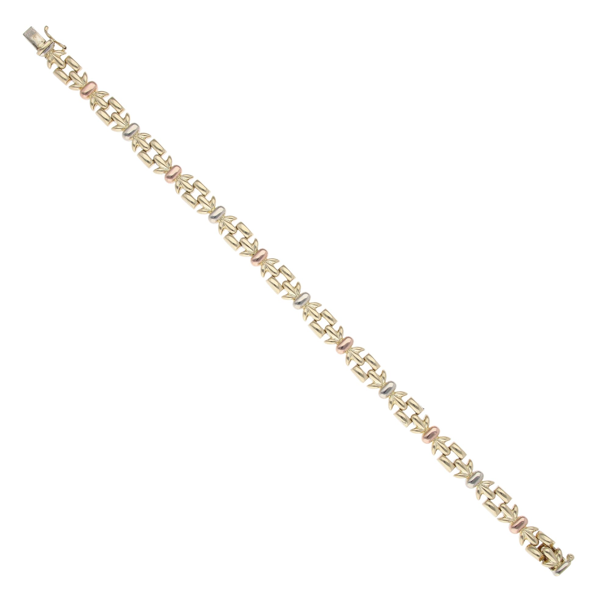 18ct Yellow, White and Rose Gold Fancy Bracelet 7.5"