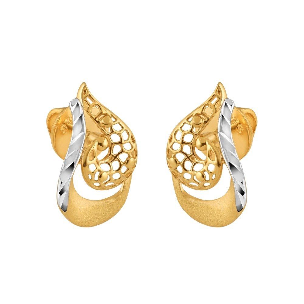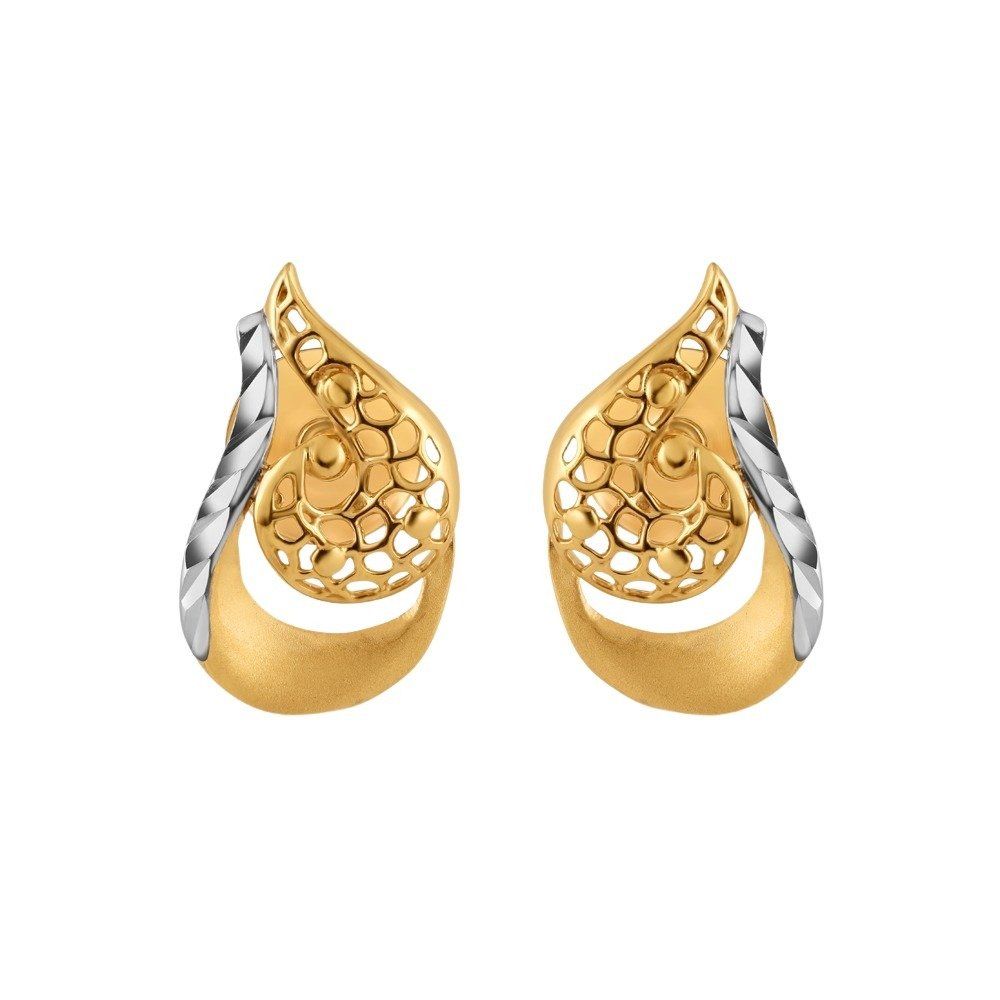 22ct Yellow Gold Curvy Petal Stud With Rhodium Finish