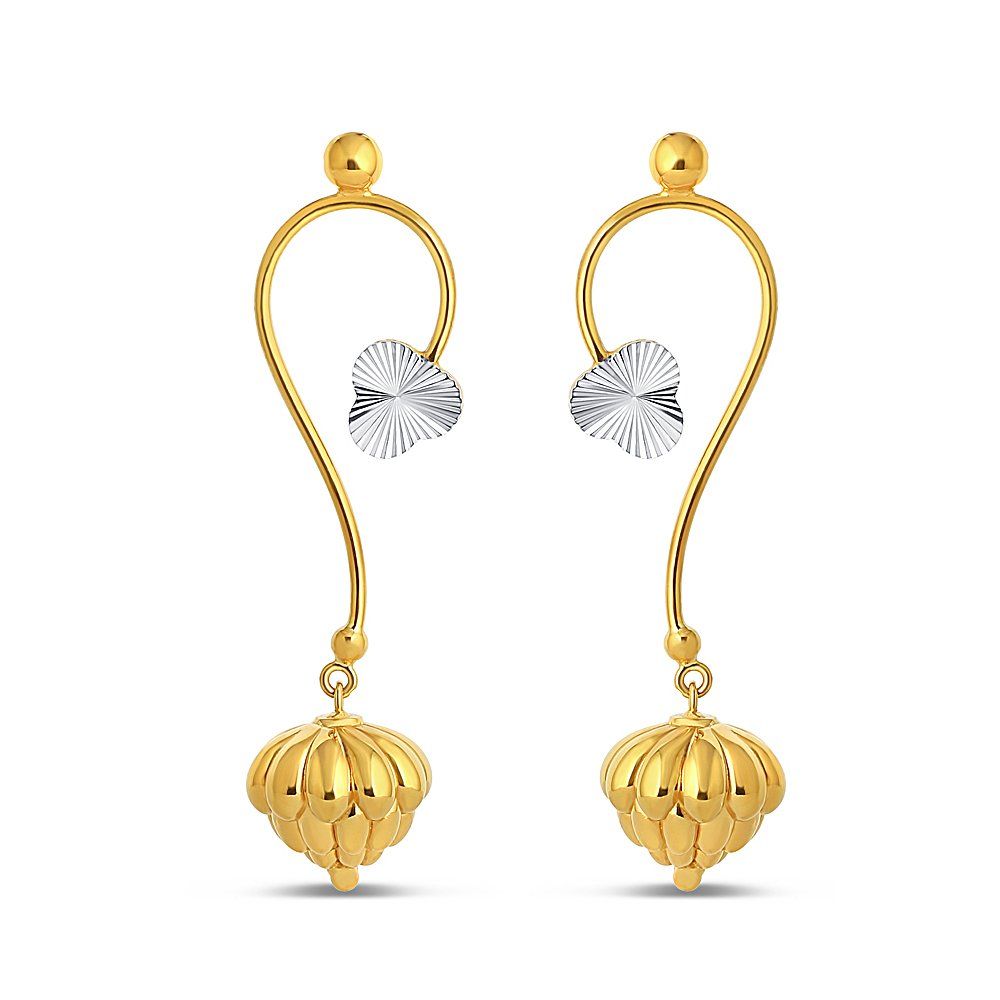 22ct Yellow Gold Rhodium Flower Drop Earrings