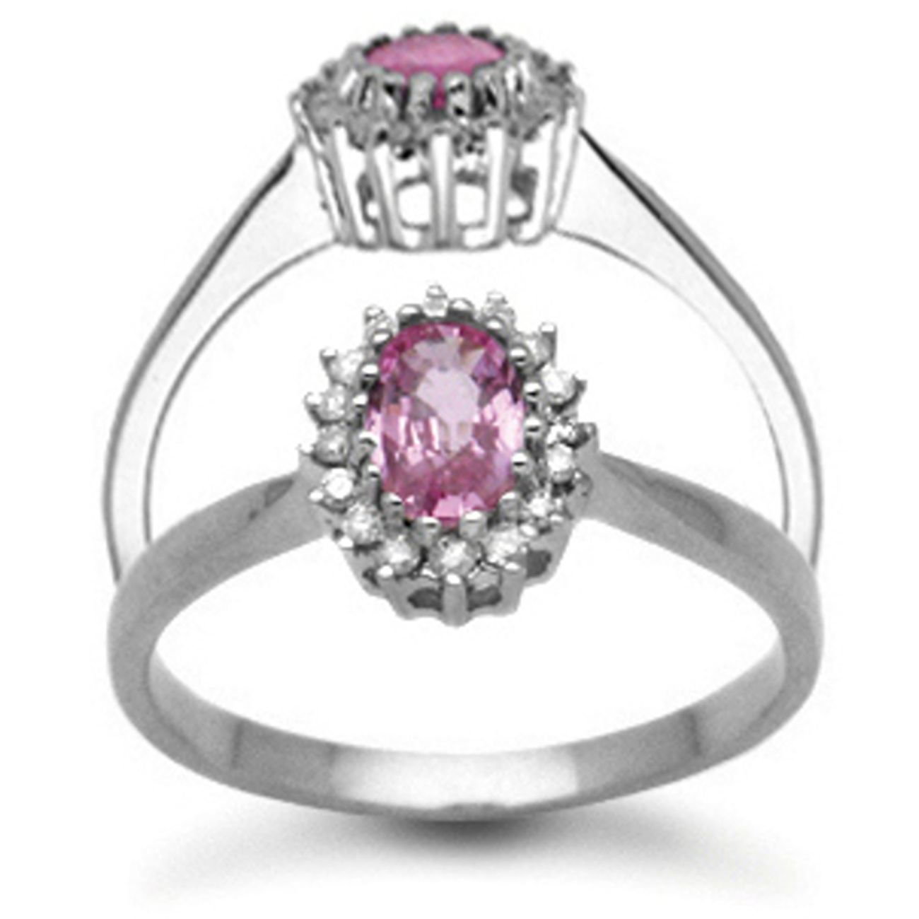 9 Carat White Gold 0.12pts Diamond & Pink Sapphire Ring