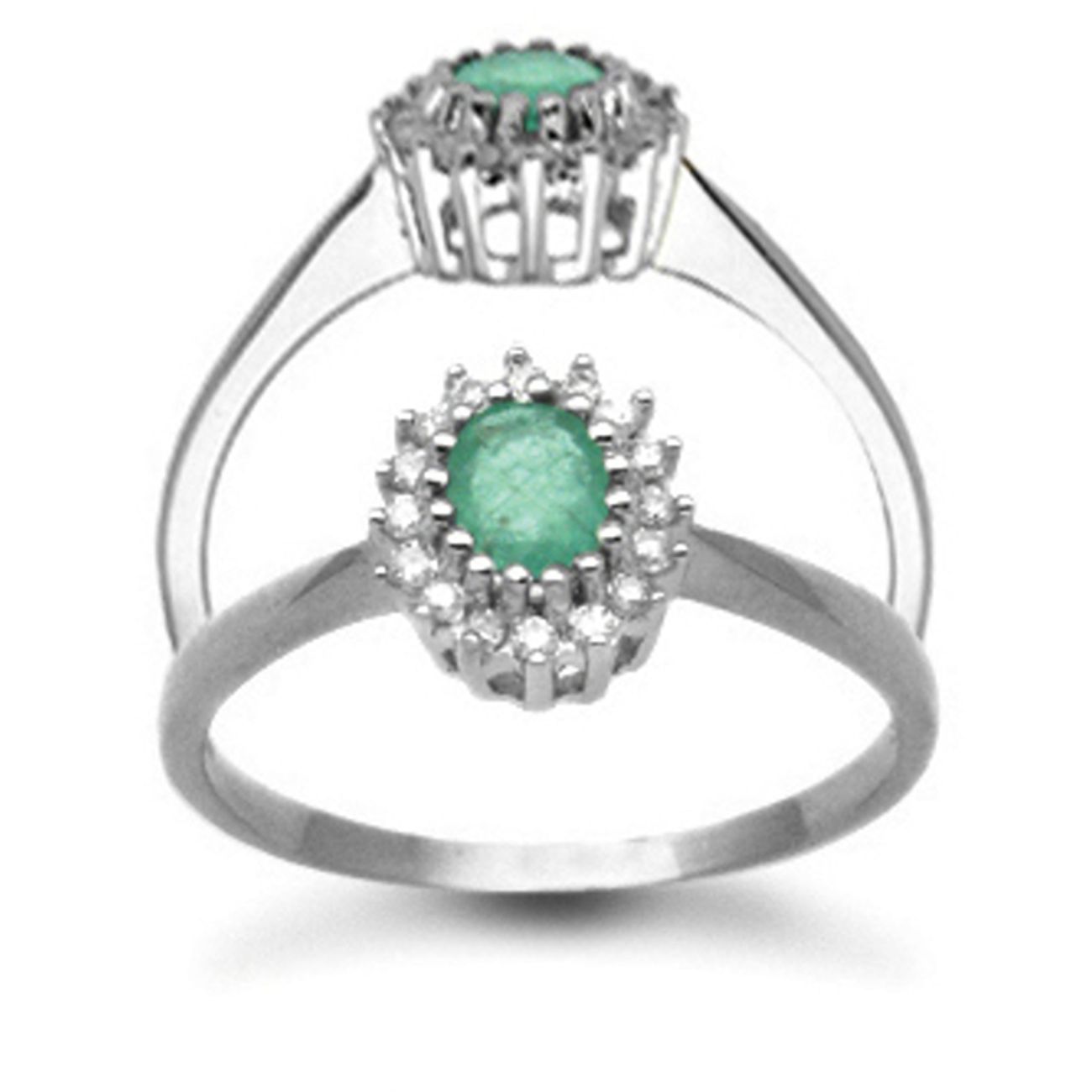 9 Carat White Gold 0.12pts Emerald And Diamond Cluster Ring