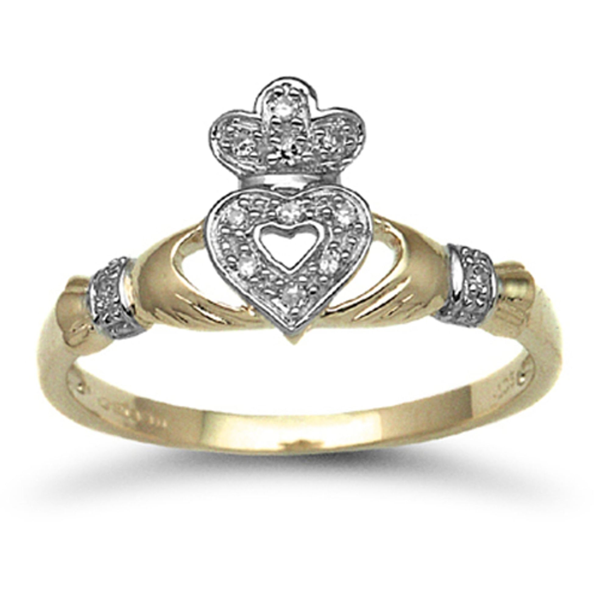 9 Carat Yellow Gold 0.05cts Diamond Claddagh Ring
