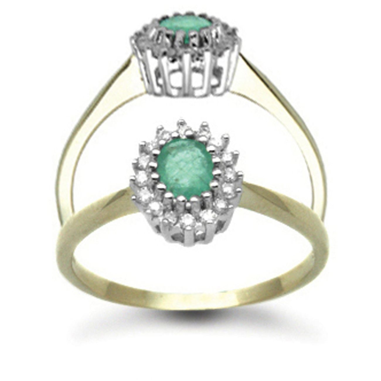 9 Carat Yellow Gold 0.12pts Diamond & Emerald Ring