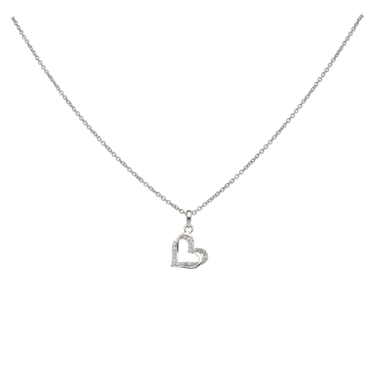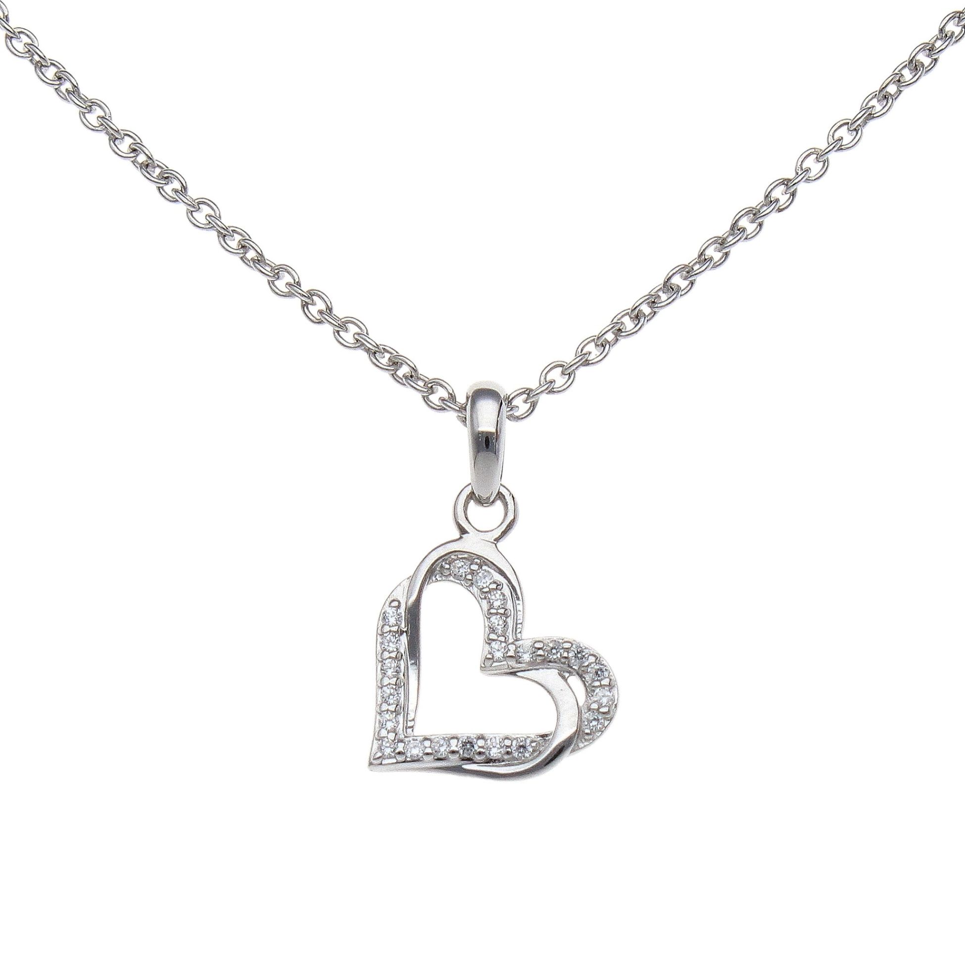 925 Sterling Silver Cubic Zirconia Heart Pendant and Chain 18"