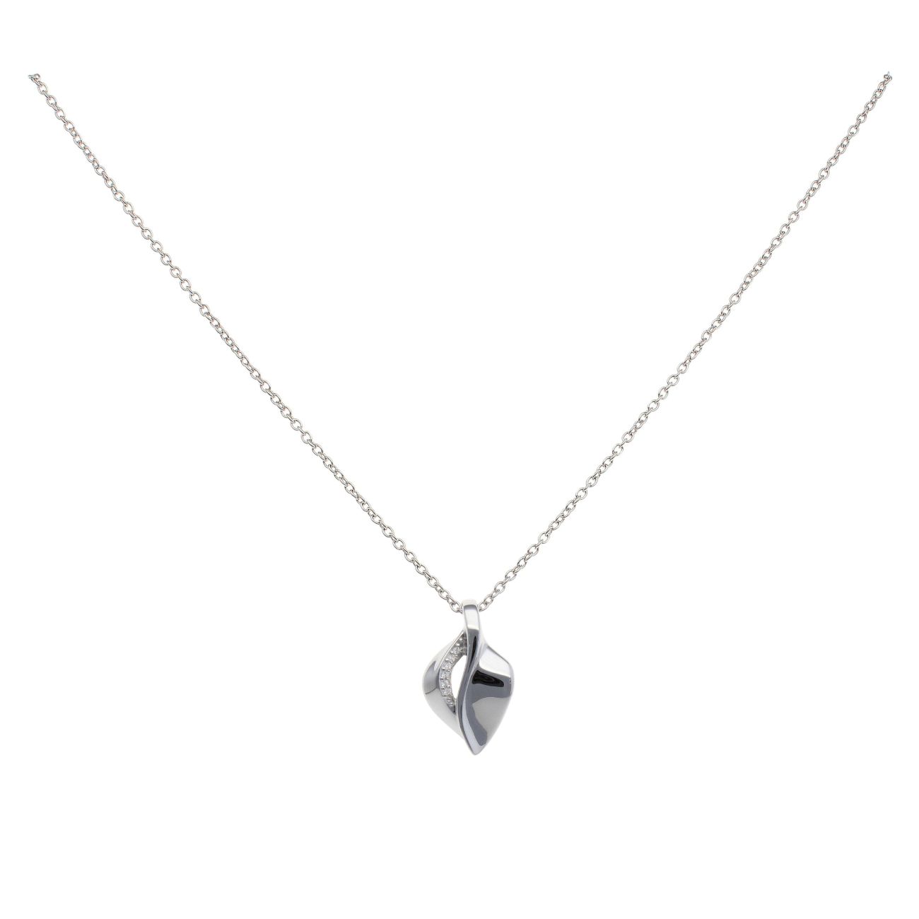 925 Sterling Silver Cubic Zirconia Leaf Pendant and Chain 18"