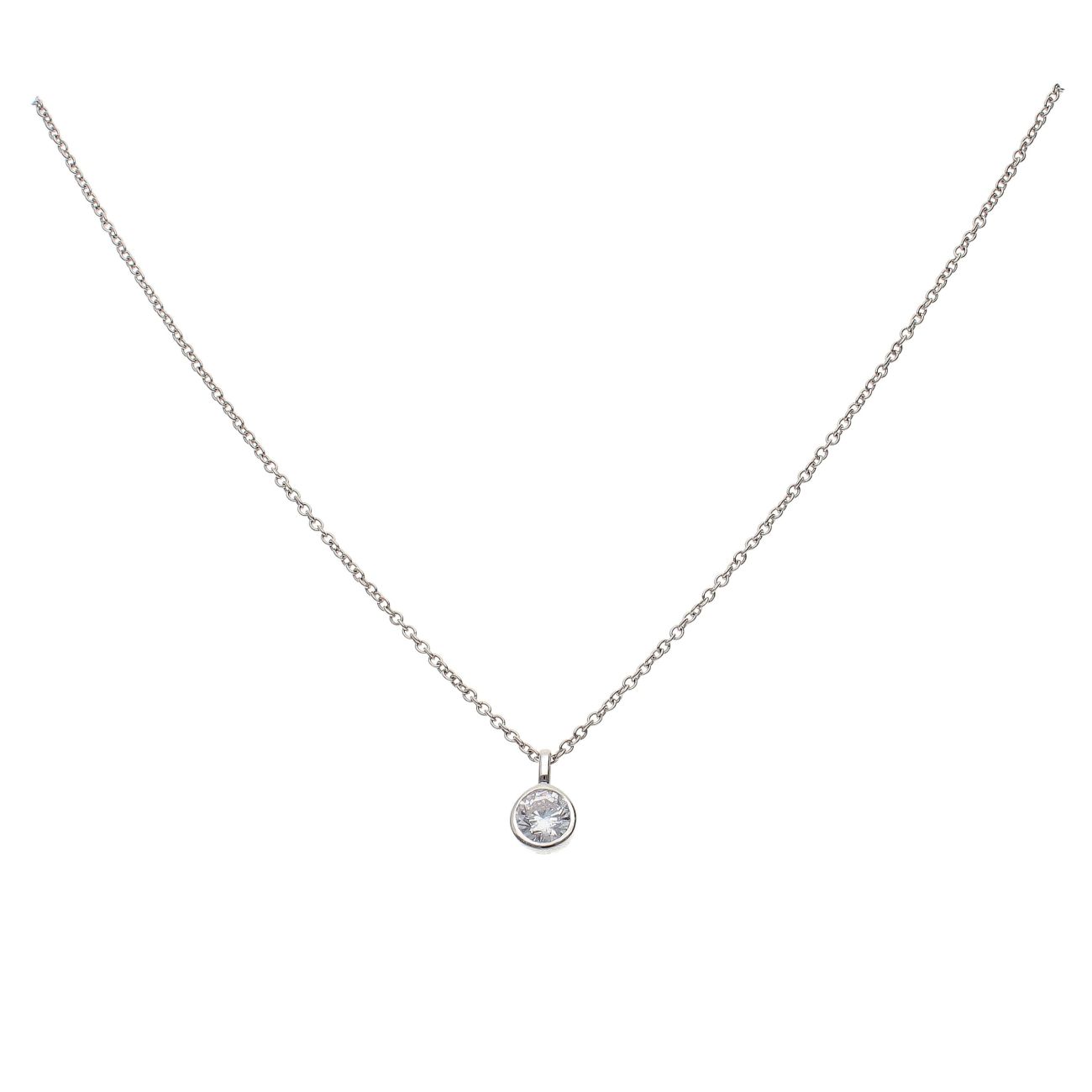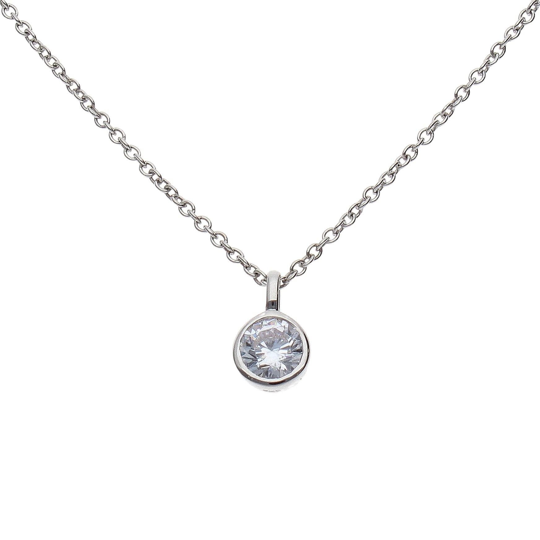 925 Sterling Silver Cubic Zirconia Solitaire Pendant And Chain 18"