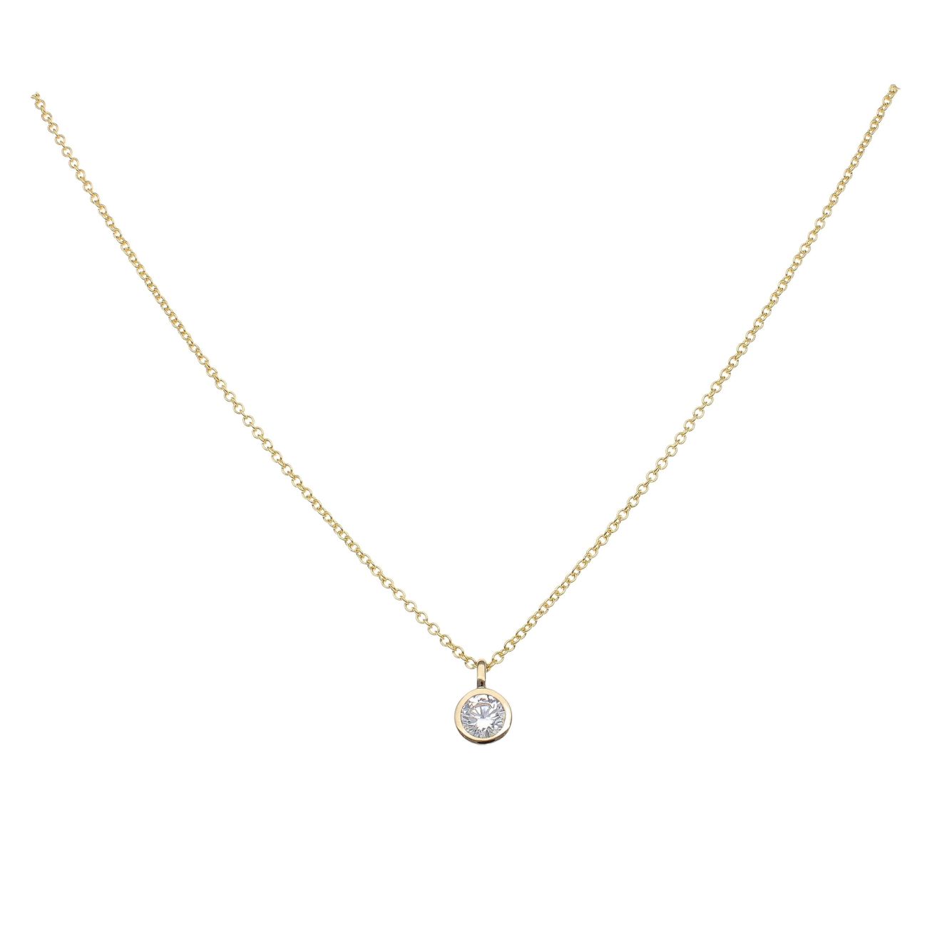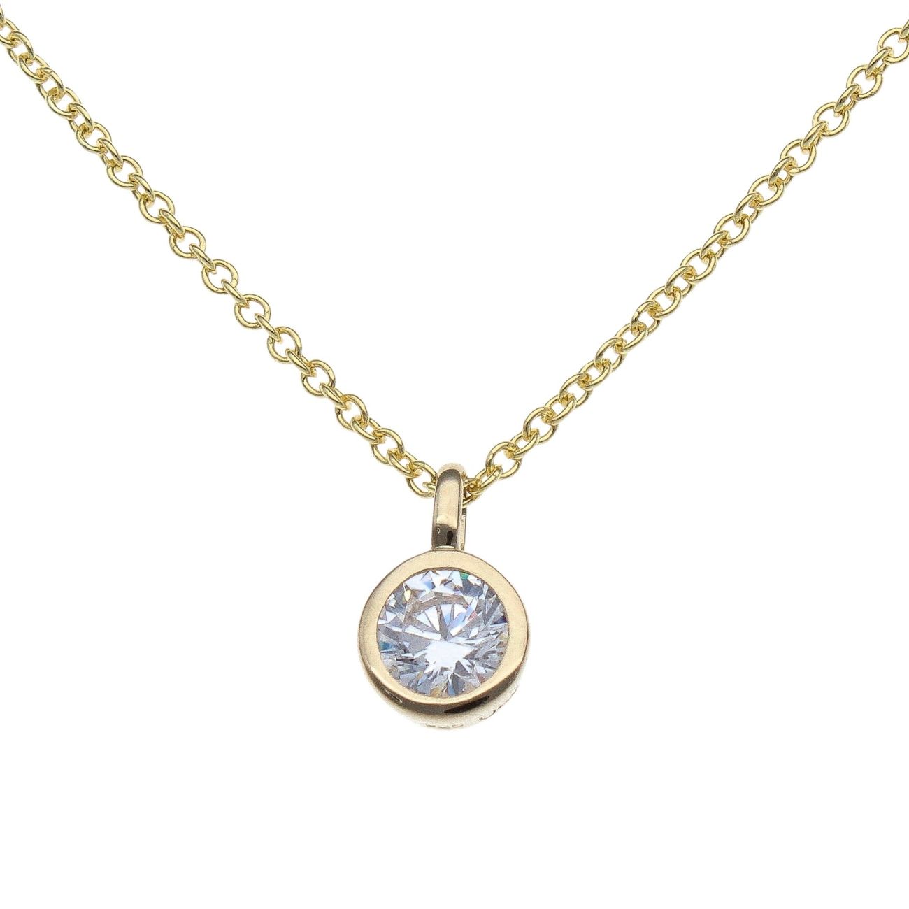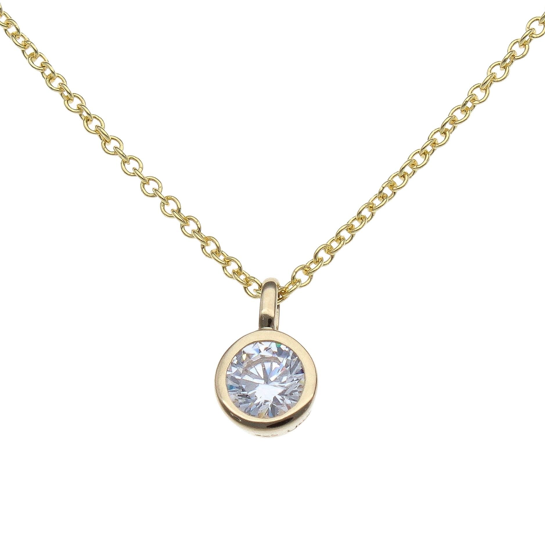 925 Sterling Silver Gold Plated Cubic Zirconia Solitaire Pendant & Chain 16"