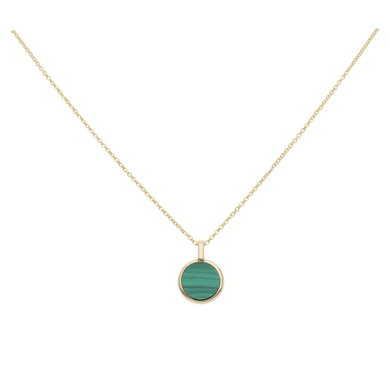 925 Sterling Silver Gold Plated Malachite Circle Pendant And Chain 18"
