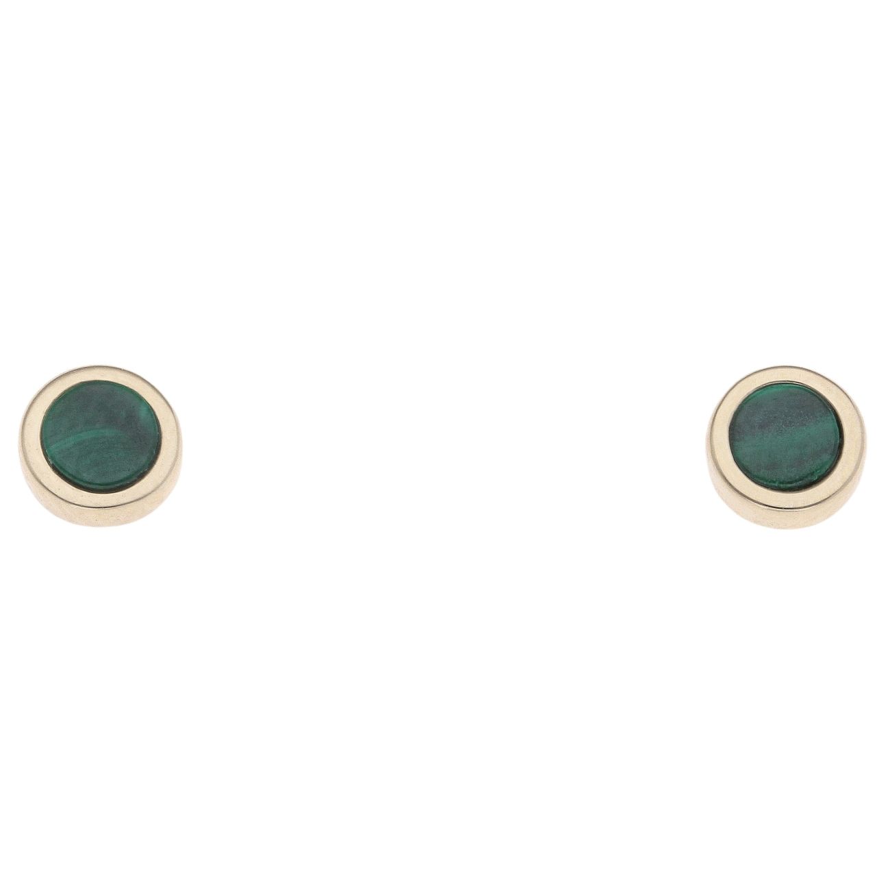 925 Sterling Silver Gold Plated Malachite Circular Stud Earrings