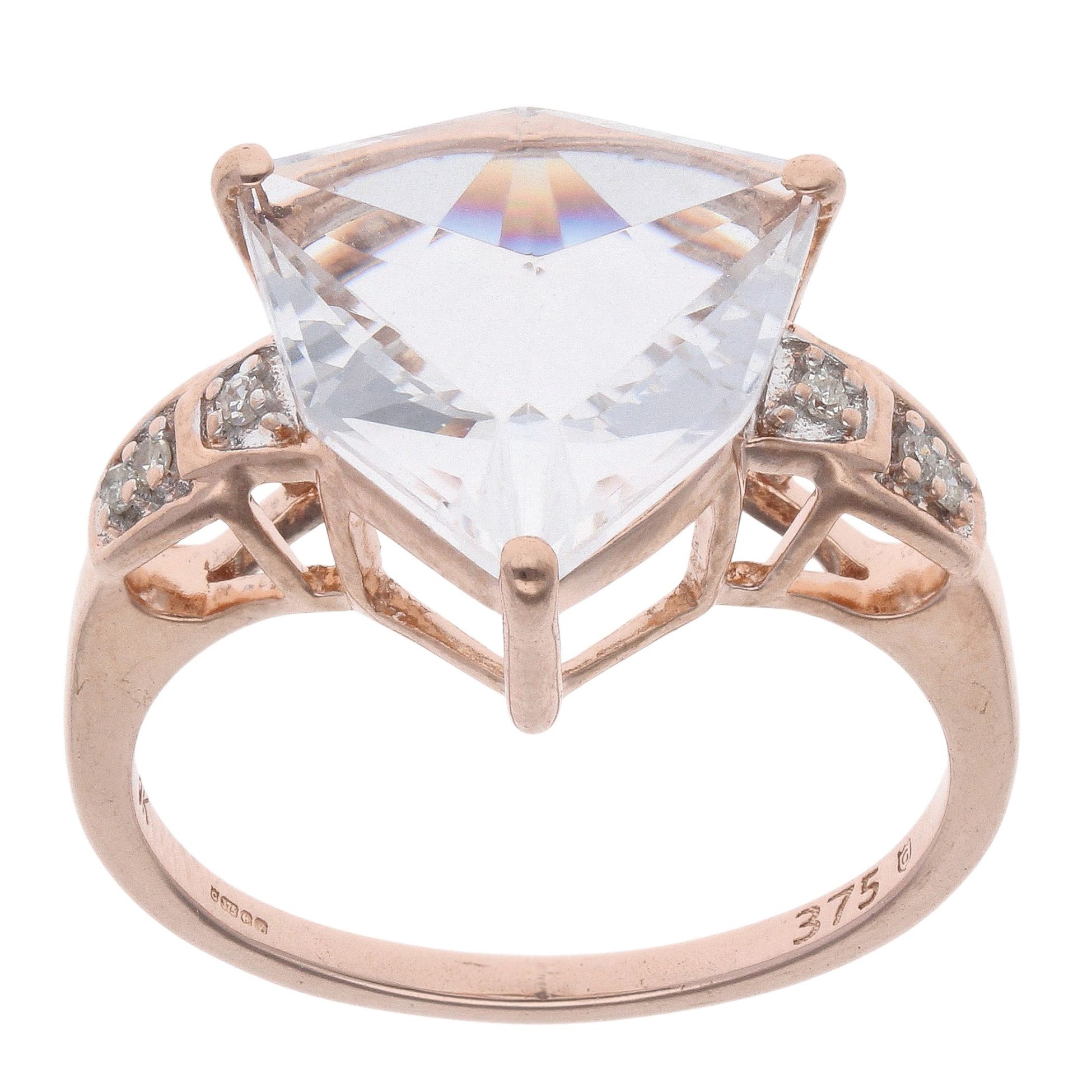 9ct Rose Gold 0.05ct Diamond And White Quartz Stone Set Ring