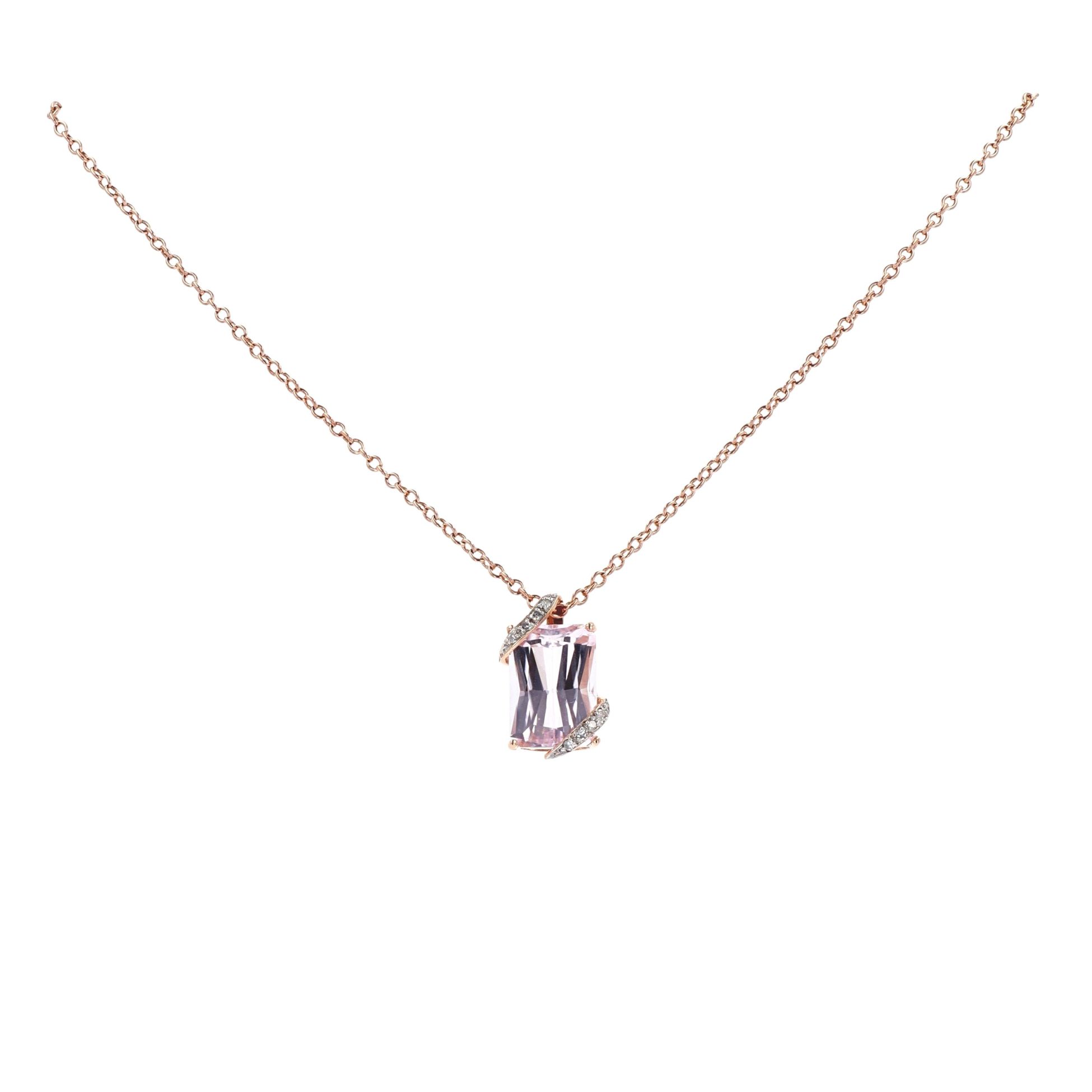 9ct Rose Gold 0.10ct Diamond and Pink Gemstone Pendant and Chain