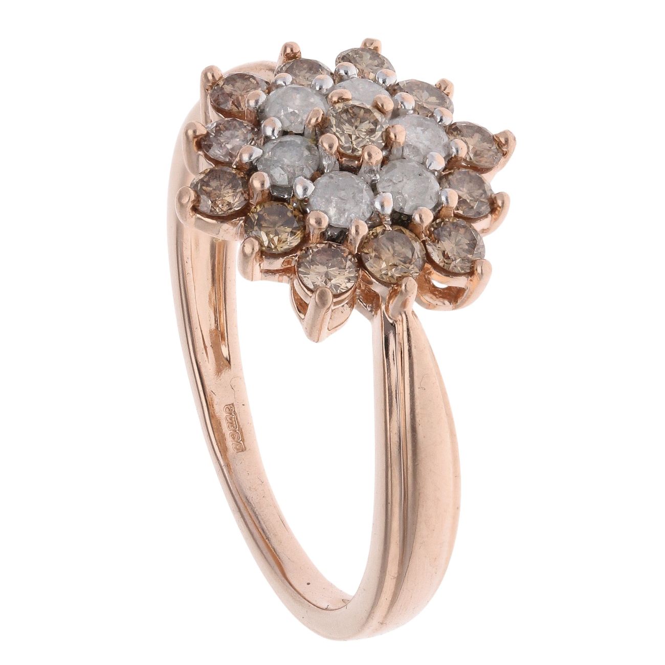 9ct Rose Gold 1.00ct Brilliant Cut Colourless And Brown Diamond Cluster Ring