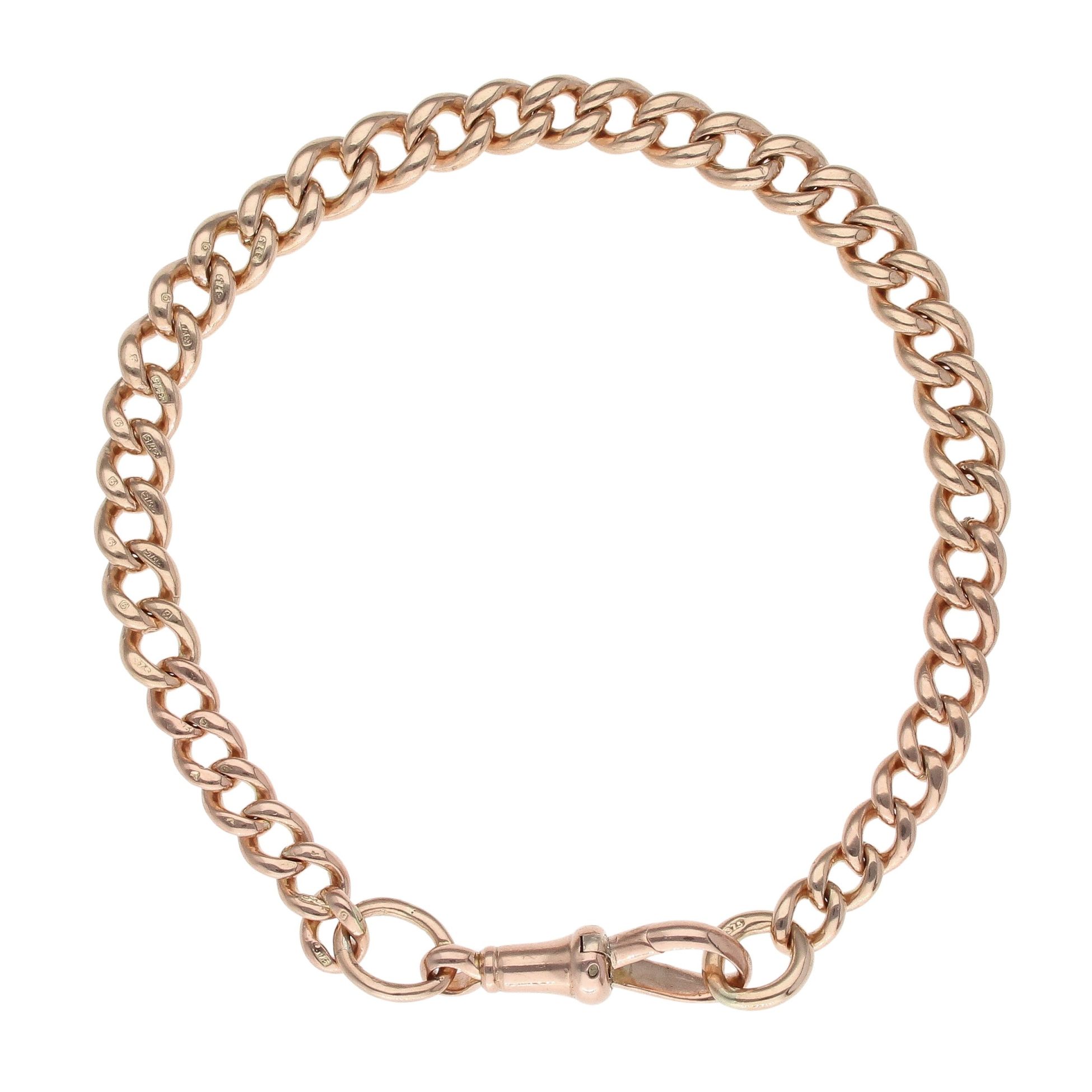 9ct Rose Gold Albert Bracelet 8"9ct Rose Gold Albert Bracelet 8"