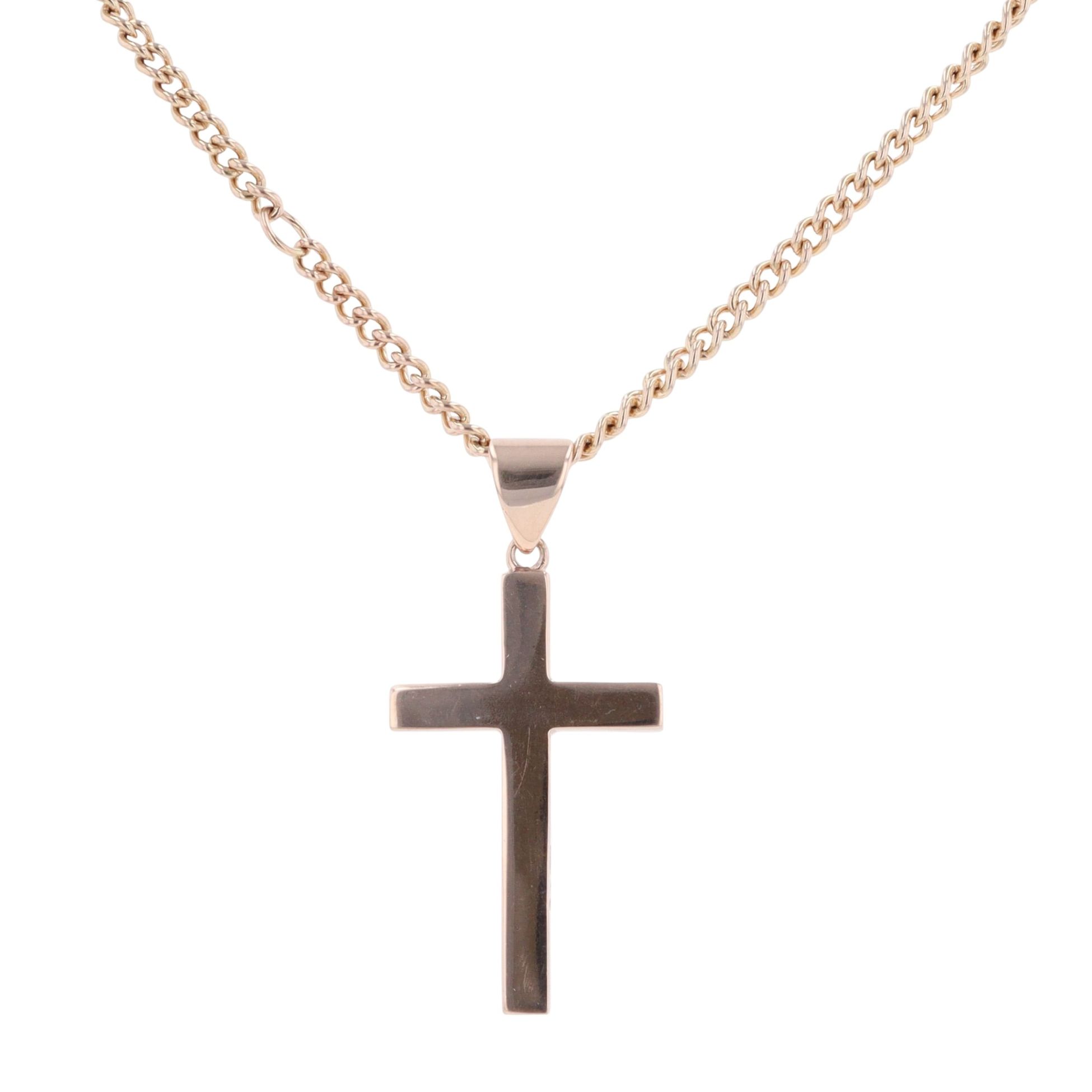 9ct Rose Gold Cross Pendant And Chain 18"