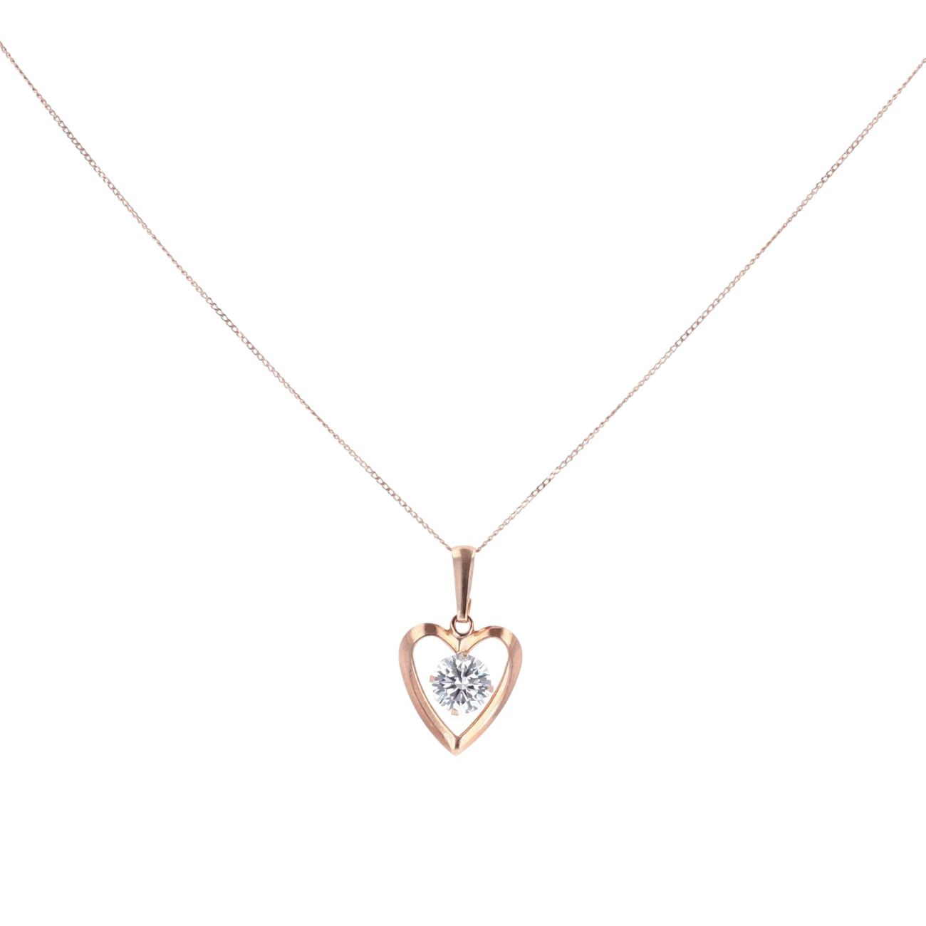 9ct Rose Gold Cubic Zirconia Heart Pendant & Chain 18"