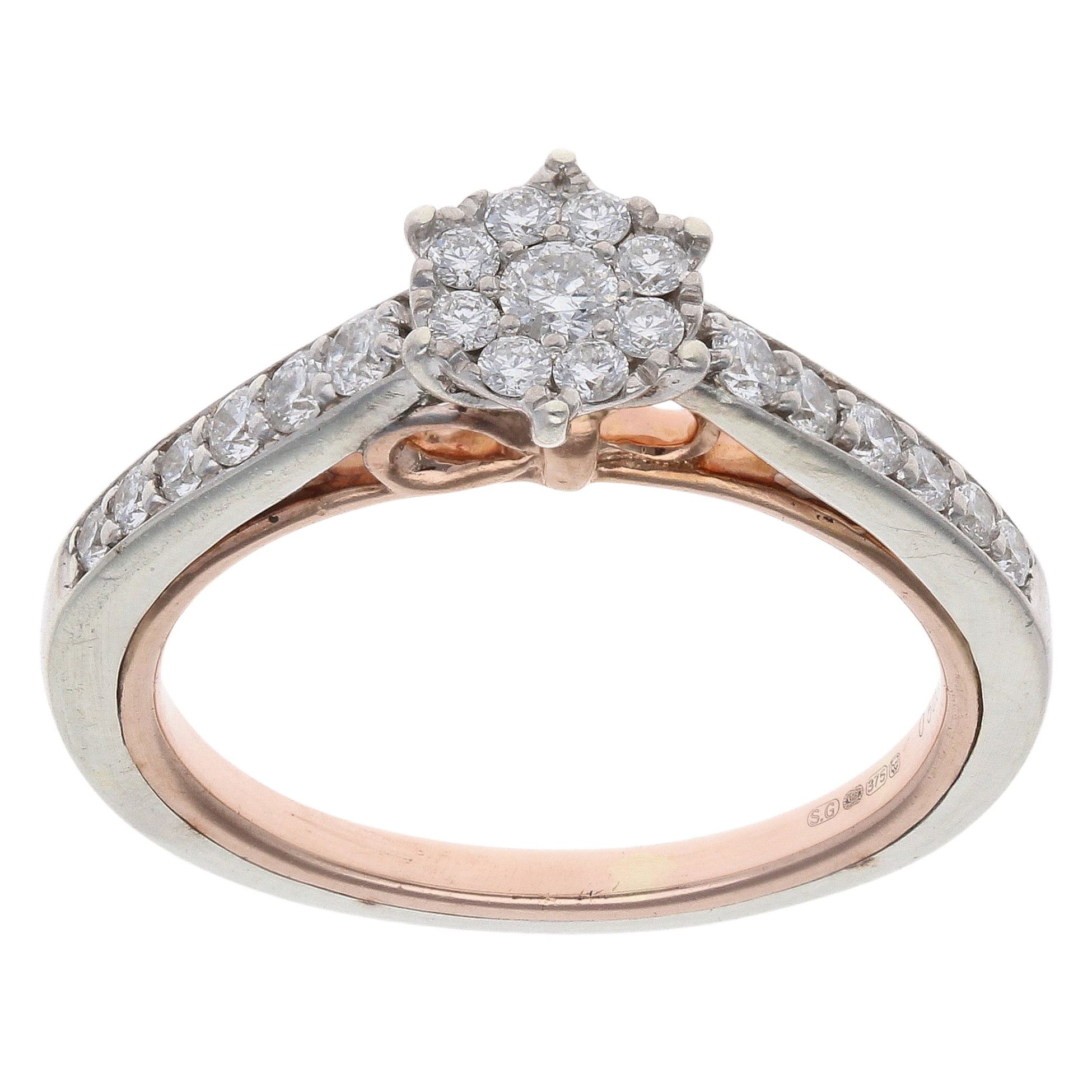 9ct White And Rose Gold 0.50ct Brilliant Cut Diamonds Disney Snow White Bow Cluster Ring