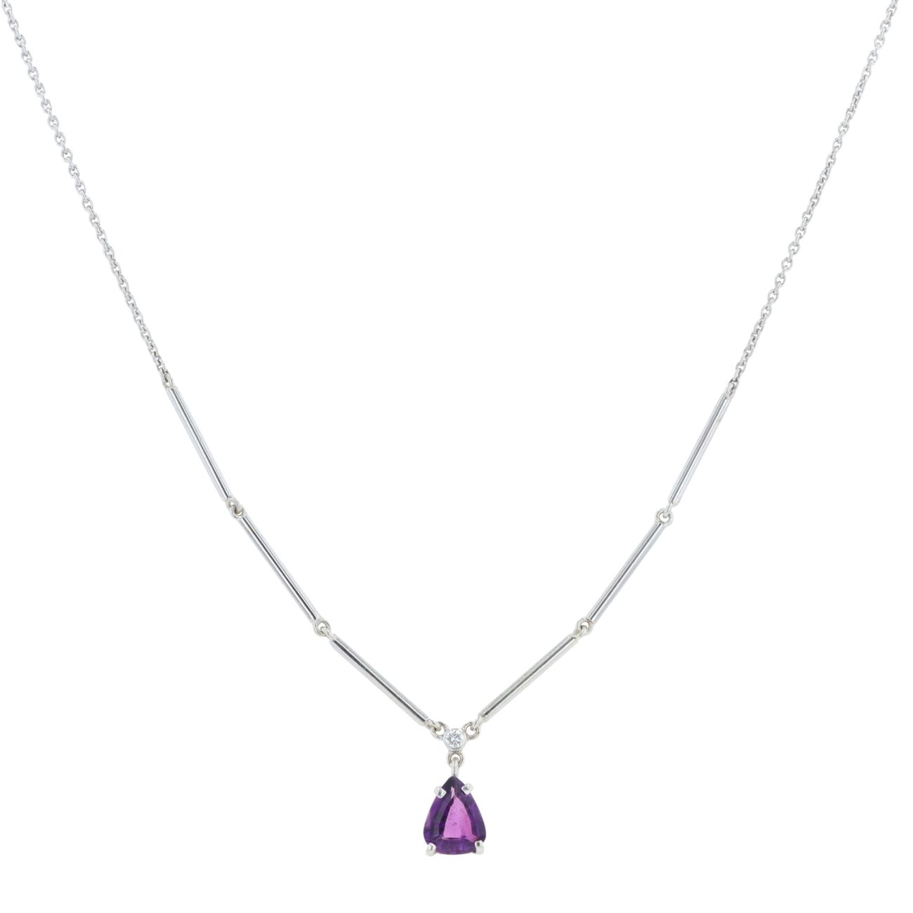 9ct White Gold 0.03ct Diamond And Amethyst Pendant And Chain 18"