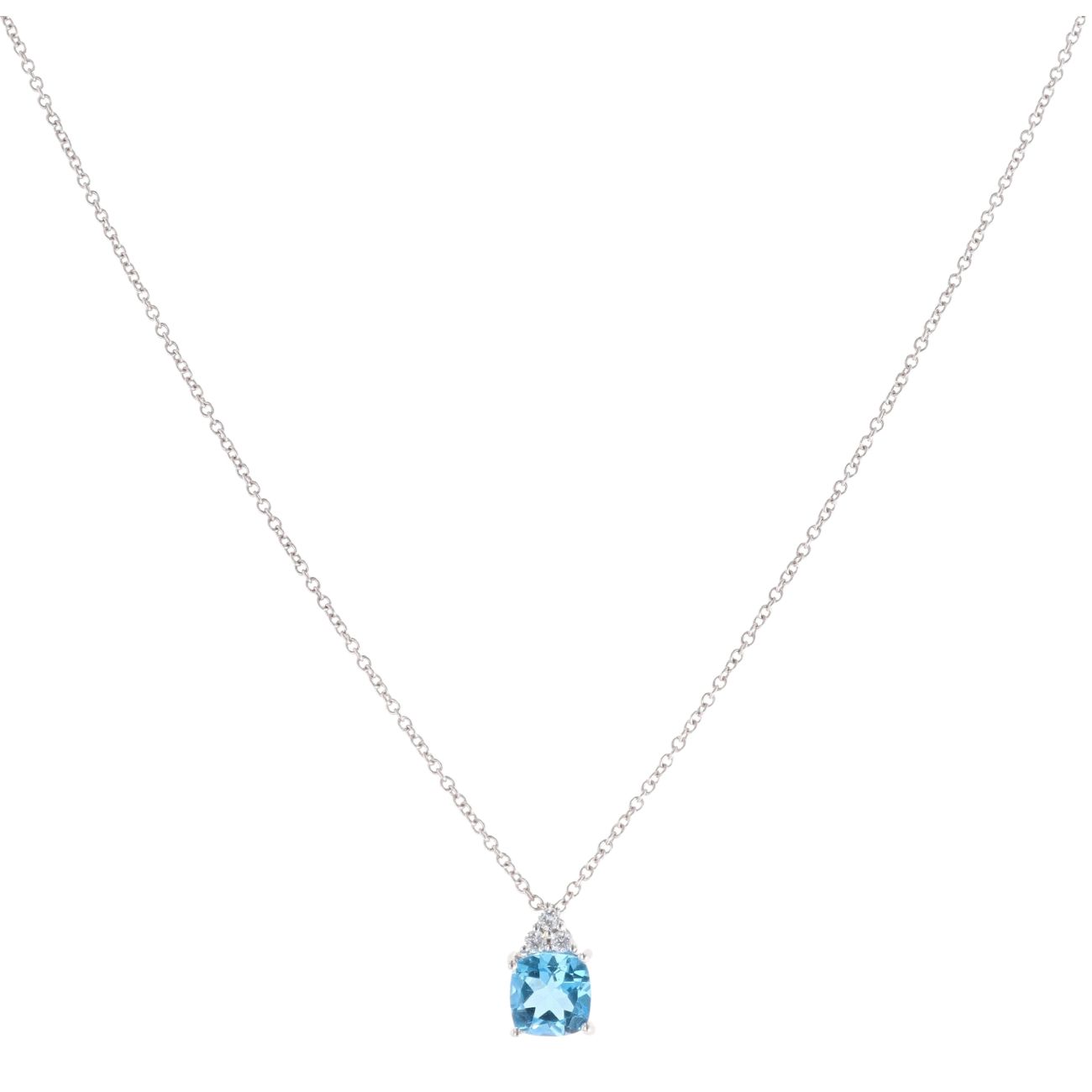 9ct White Gold 0.05ct Diamond and Blue Topaz Pendant and Chain 16"