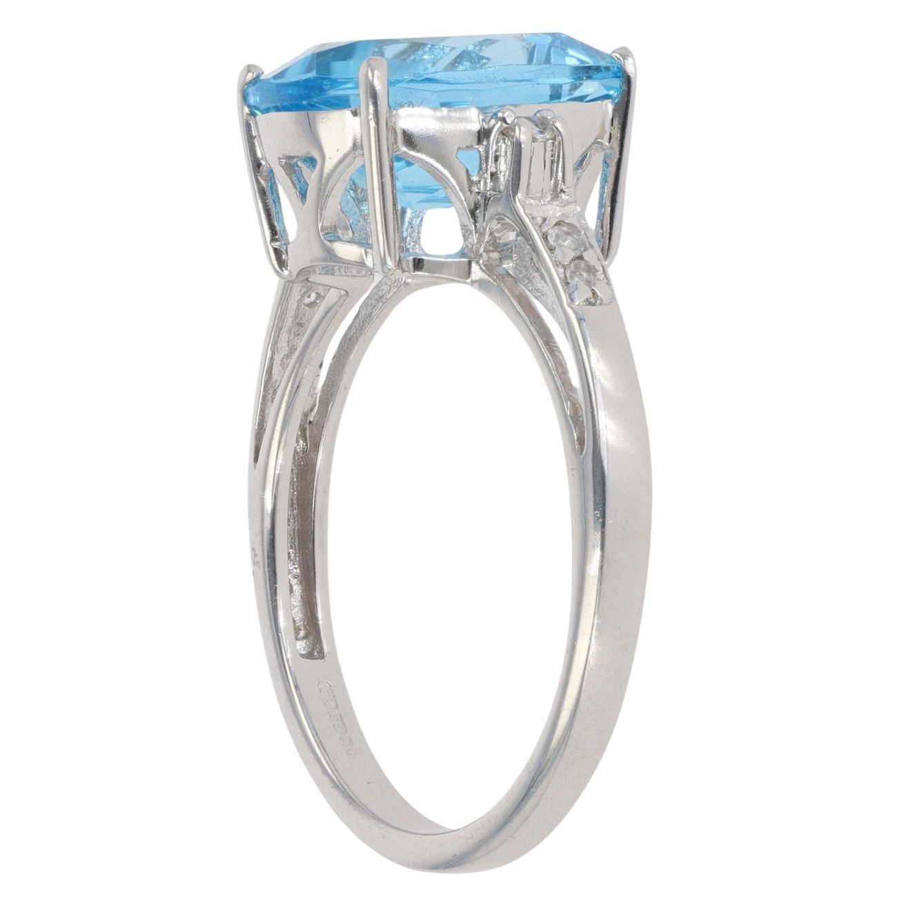 9ct White Gold 0.05ct Diamond and Blue Topaz Ring