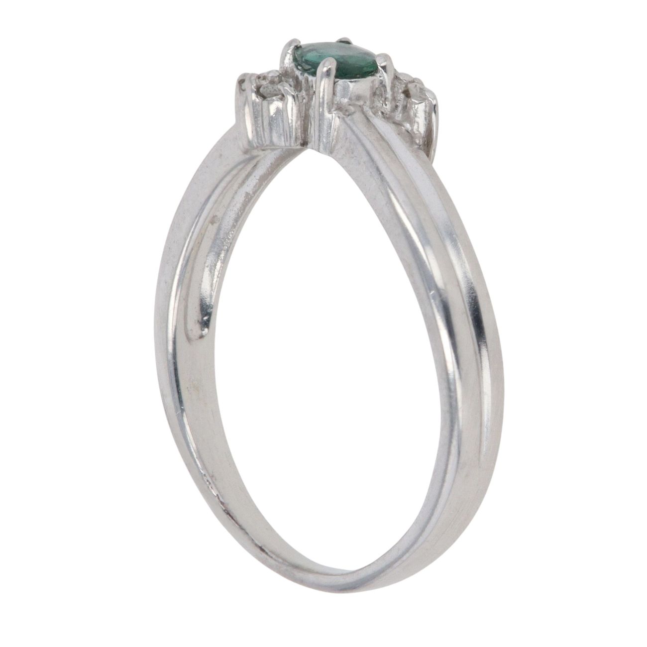 9ct White Gold 0.05ct Diamond And Emerald Ring