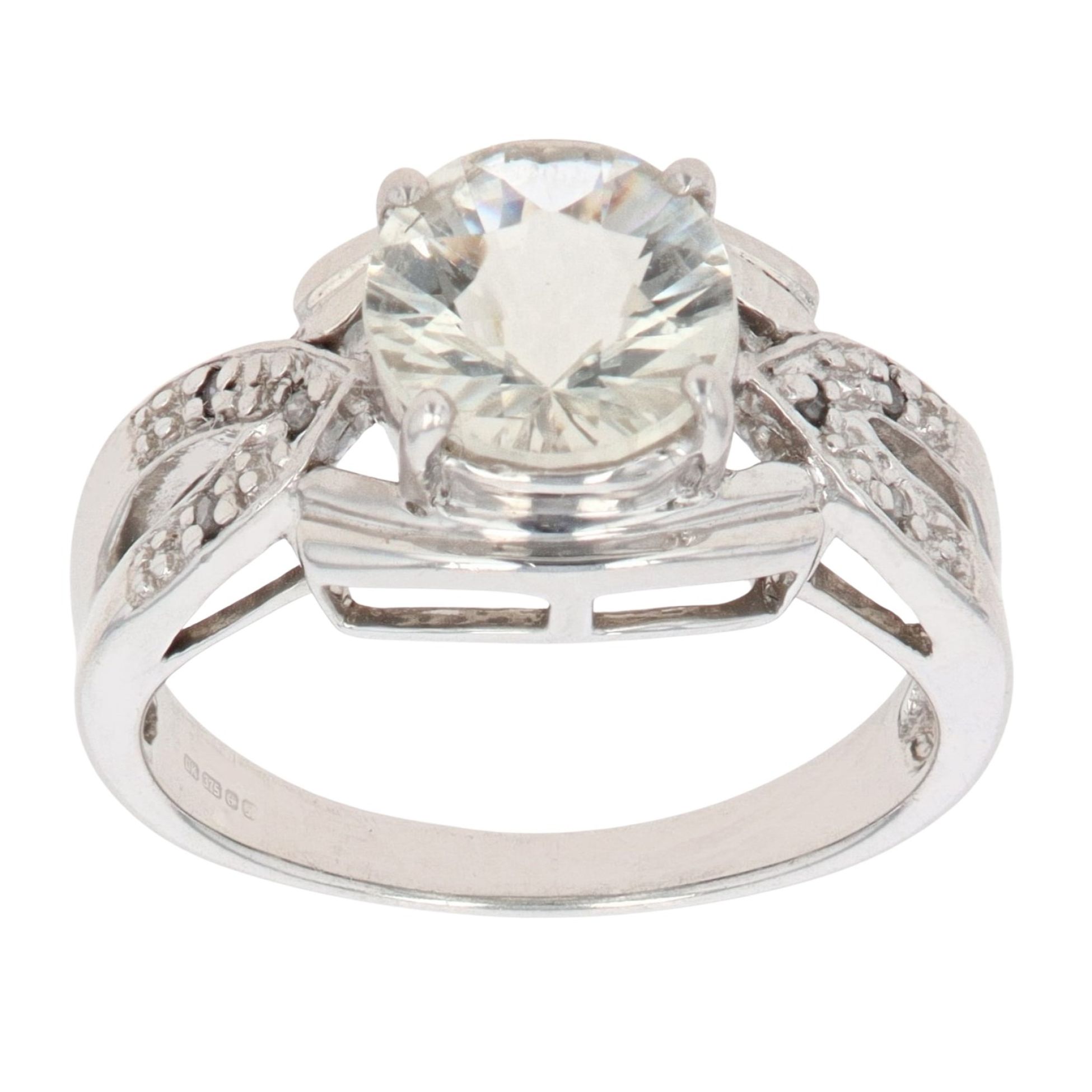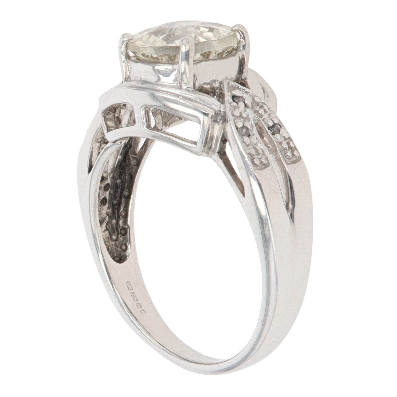 9ct White Gold 0.05ct Diamond And Green Quartz Ring