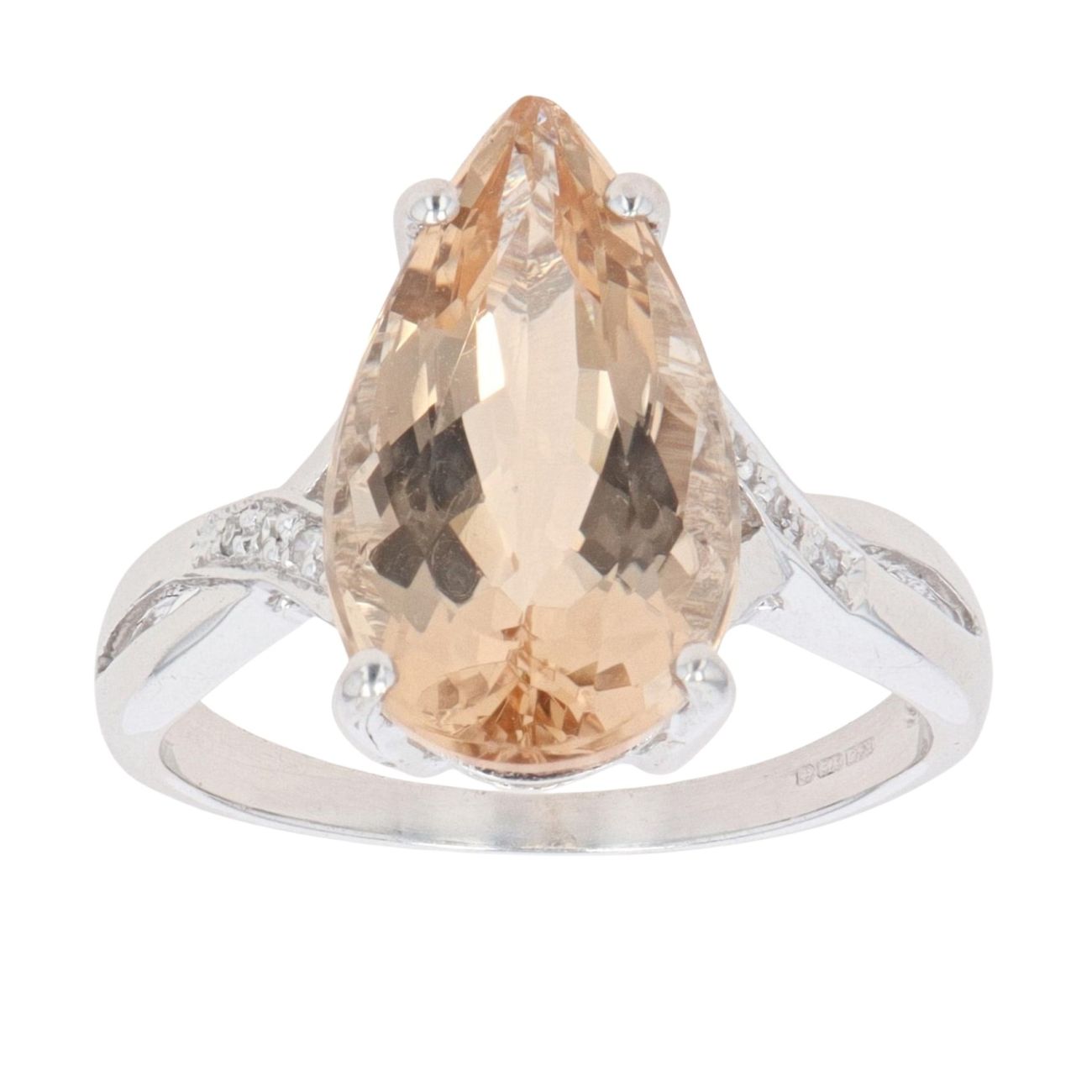 9ct White Gold 0.05ct Diamond And Orange Gemstone Ring