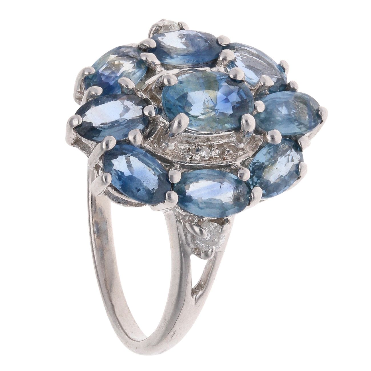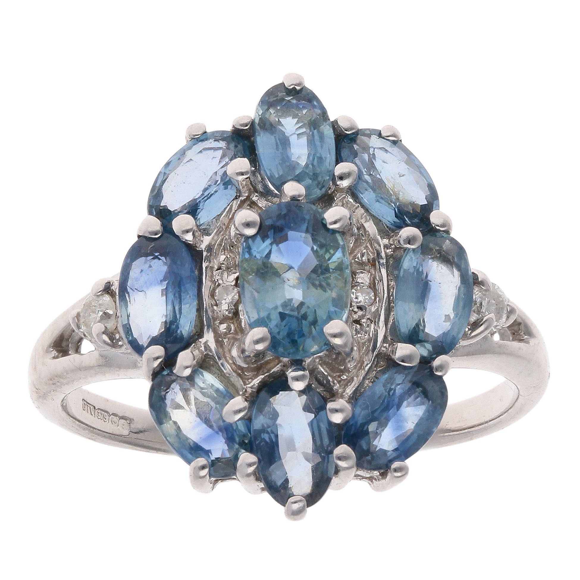 9ct White Gold 0.05ct Diamond And Sapphire Cluster Ring