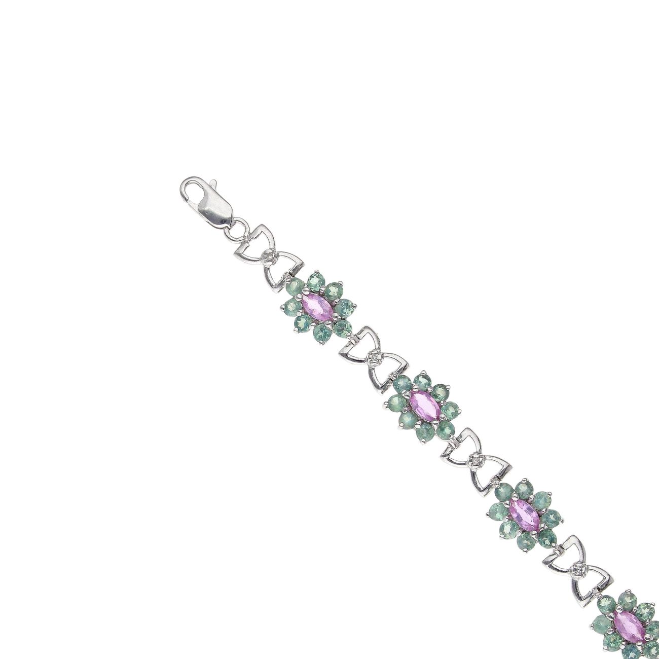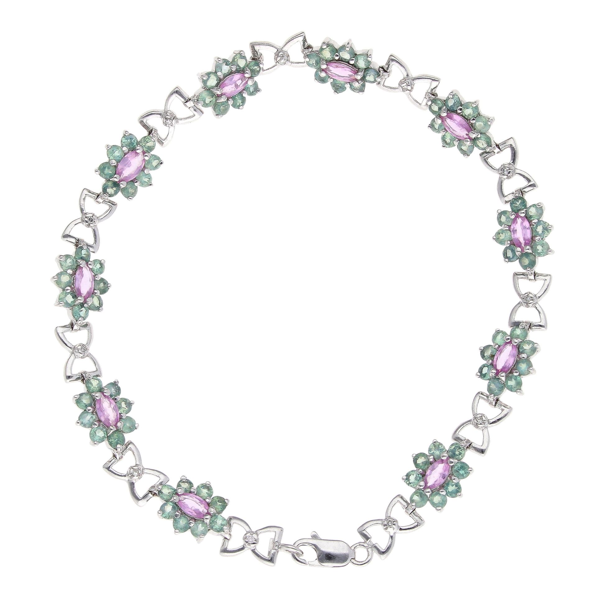 9ct White Gold 0.05ct Diamond, Pink Sapphire And Labradorite Bracelet 7"