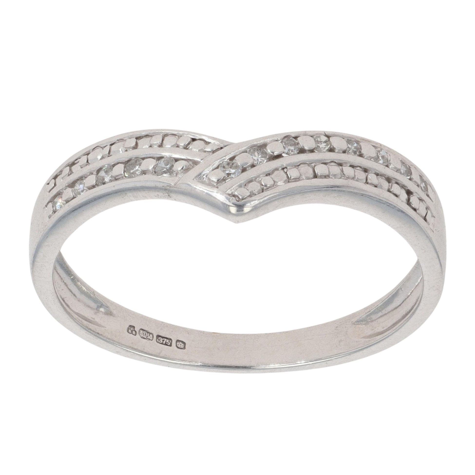 9ct White Gold 0.07ct Diamond Wishbone Ring