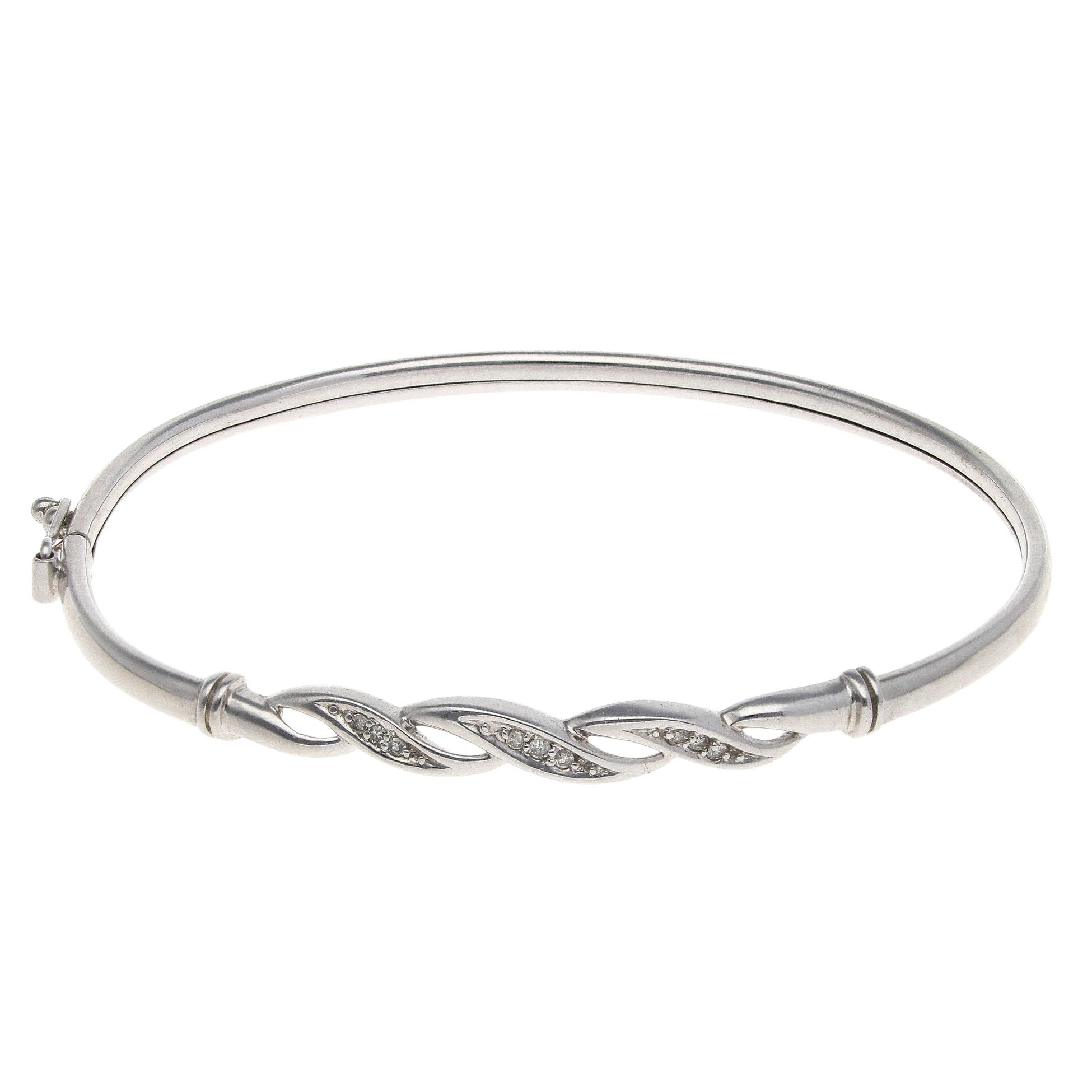 9ct White Gold 0.10ct Brilliant Cut Diamond Bangle