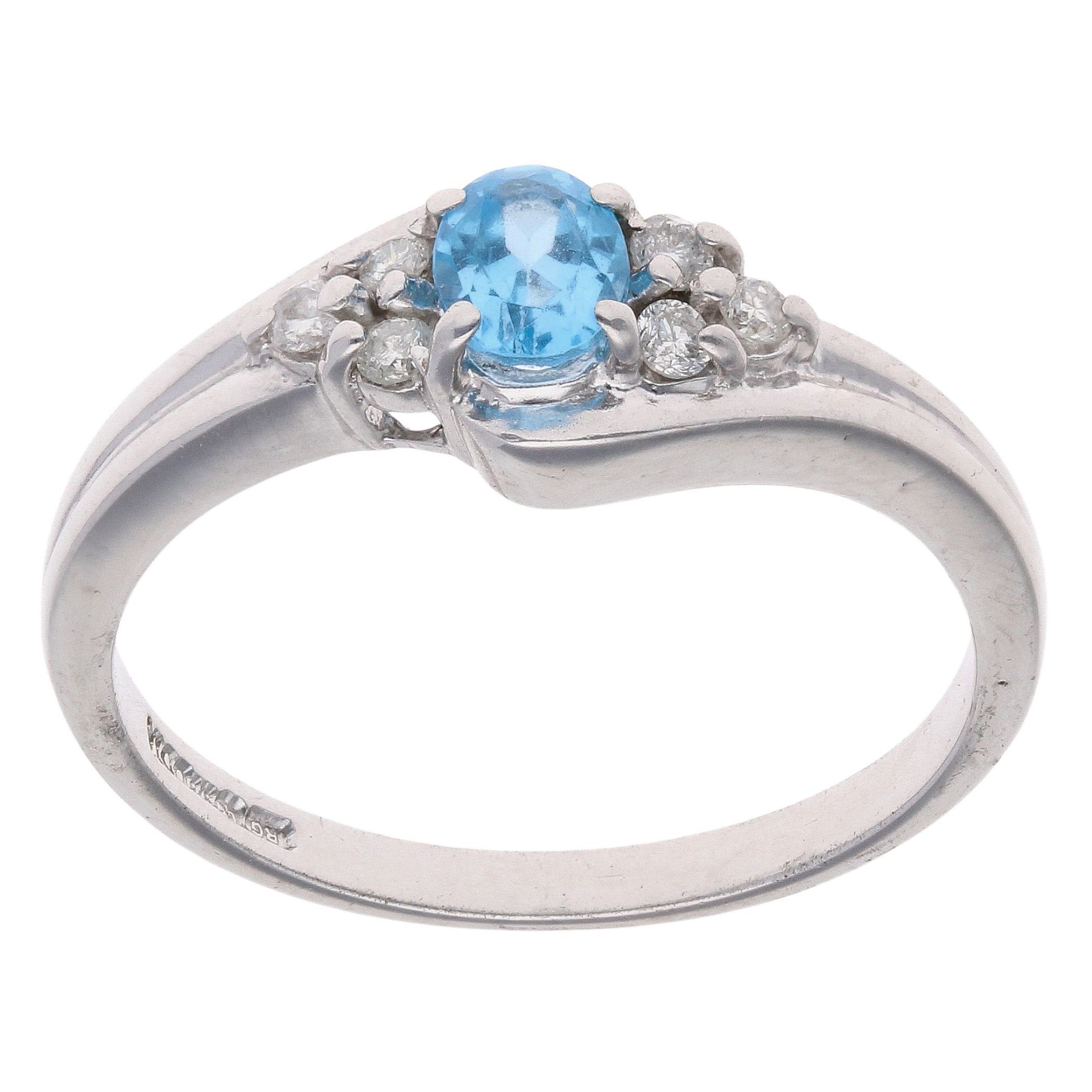 9ct White Gold 0.10ct Diamond and Topaz Gemstone Ring