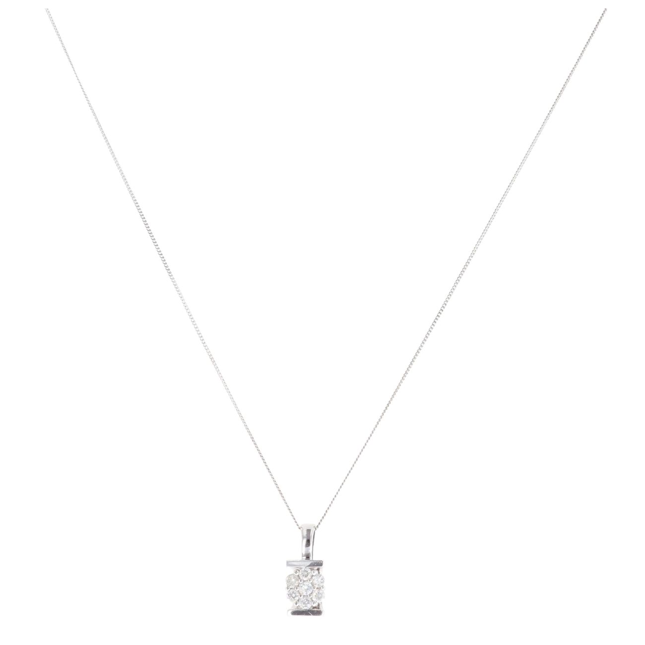 9ct White Gold 0.13ct Diamond Cluster Pendant and Chain 18"