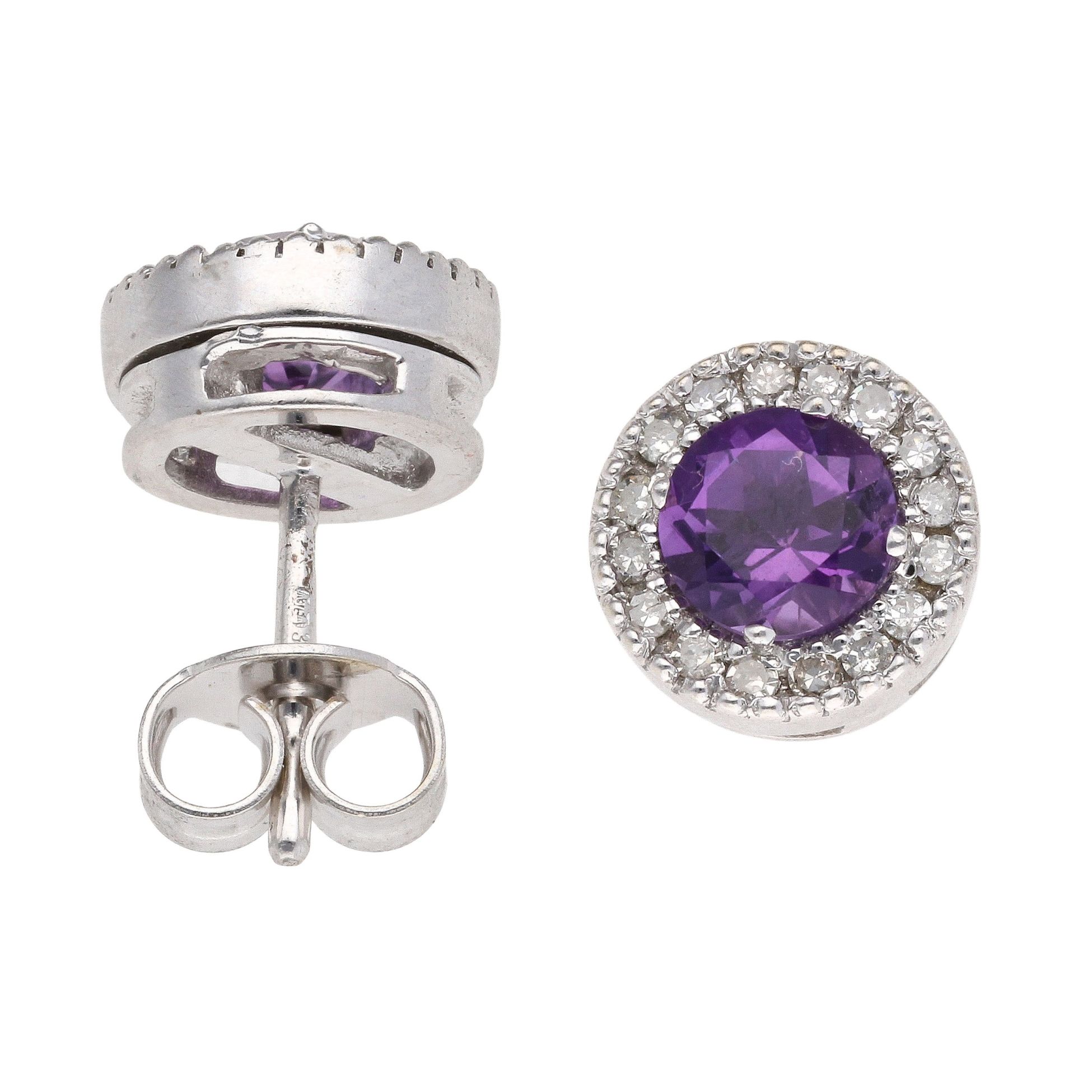 9ct White Gold 0.15ct Brilliant Cut Diamond And Amethyst Cluster Stud Earrings