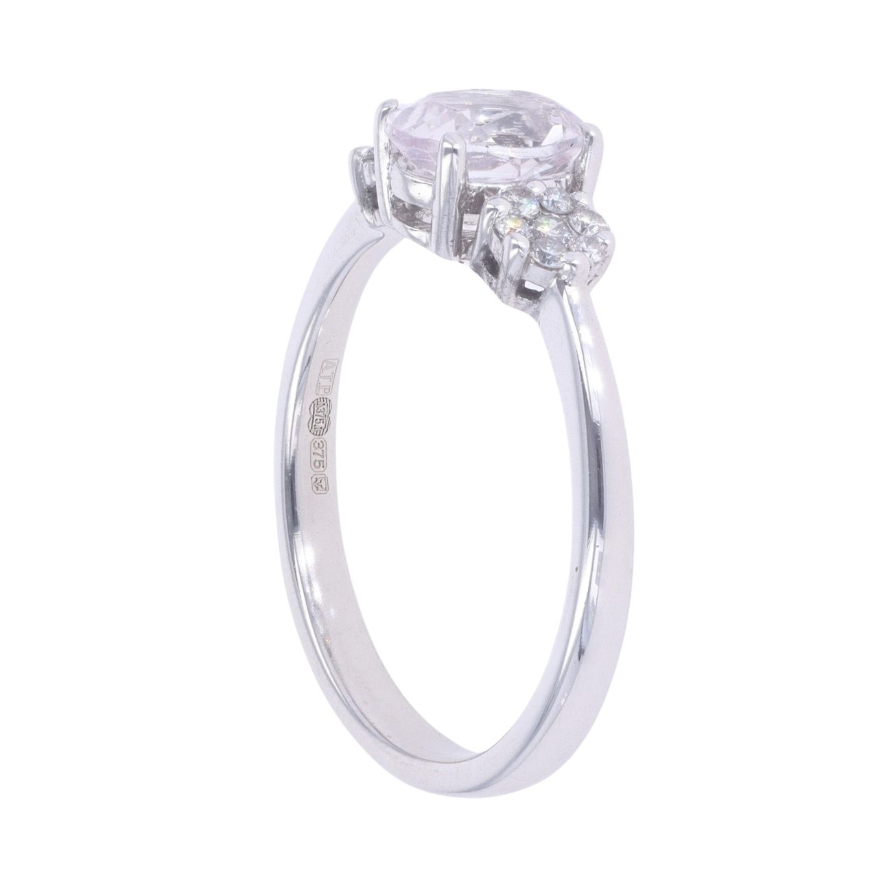 9ct White Gold 0.15ct Diamond And Pink Gemstone Ring