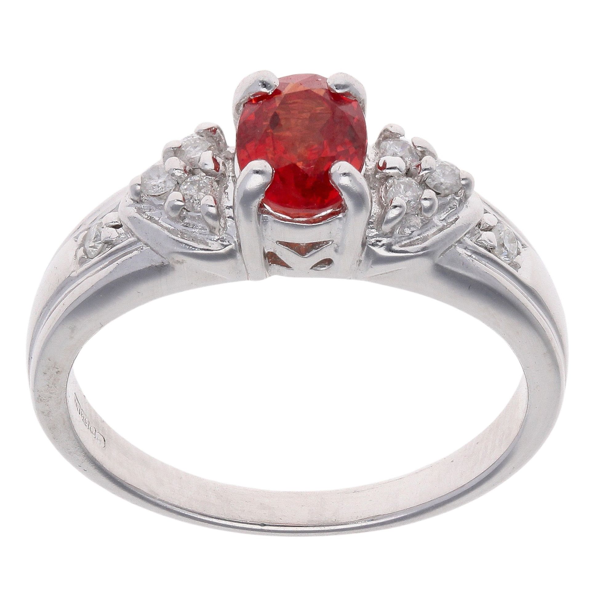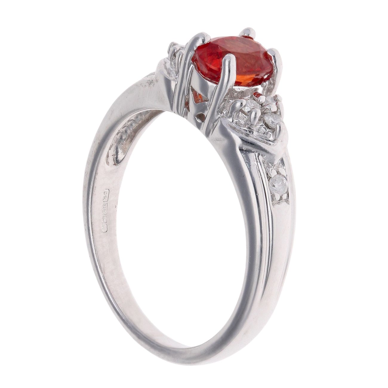 9ct White Gold 0.15ct Diamond And Red Gemstone Ring