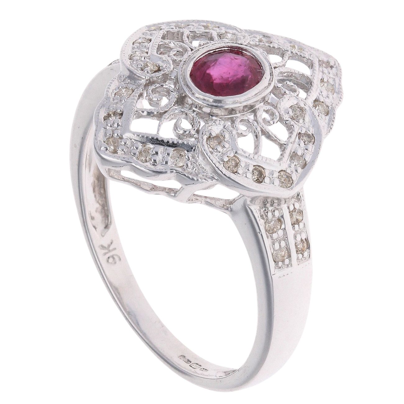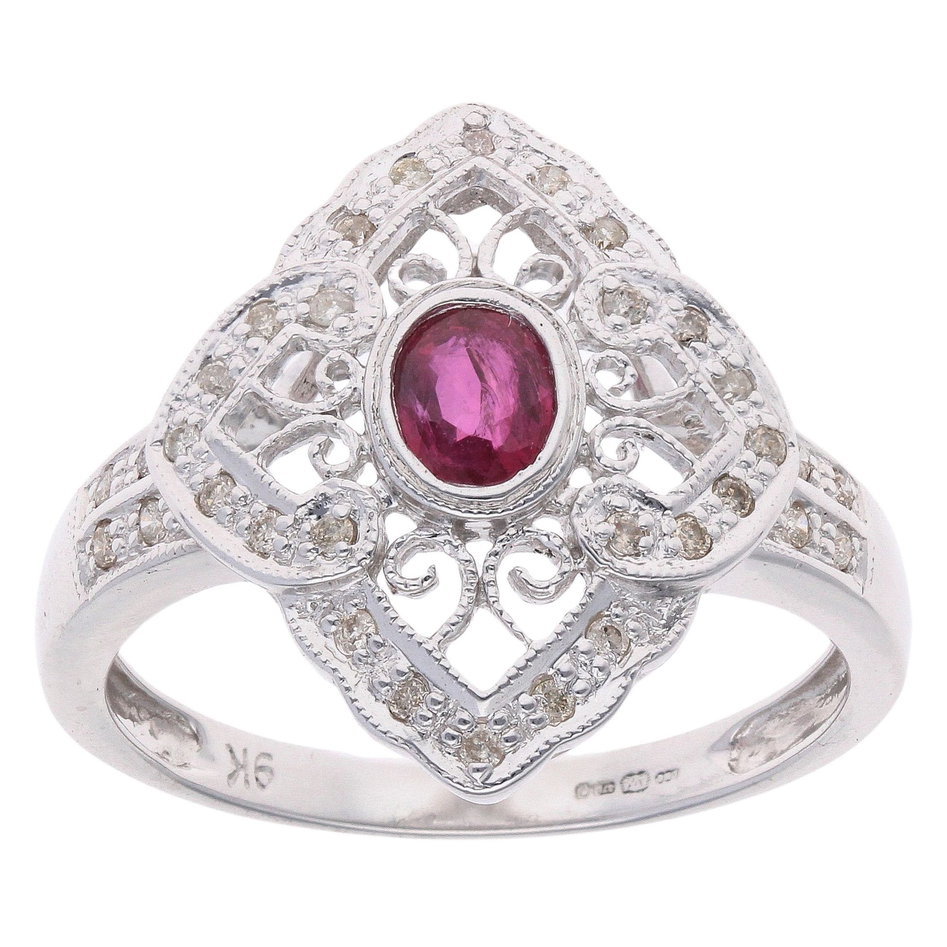9ct White Gold 0.15ct Diamond And Ruby Ring