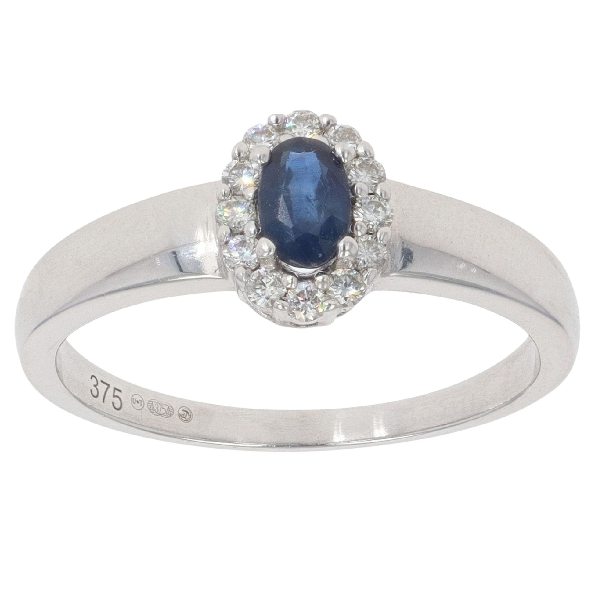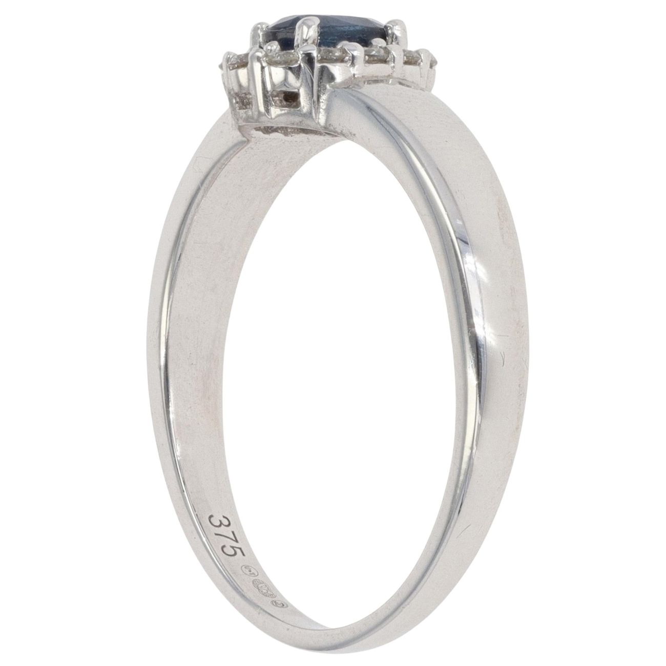 9ct White Gold 0.15ct Diamond And Sapphire Cluster Ring